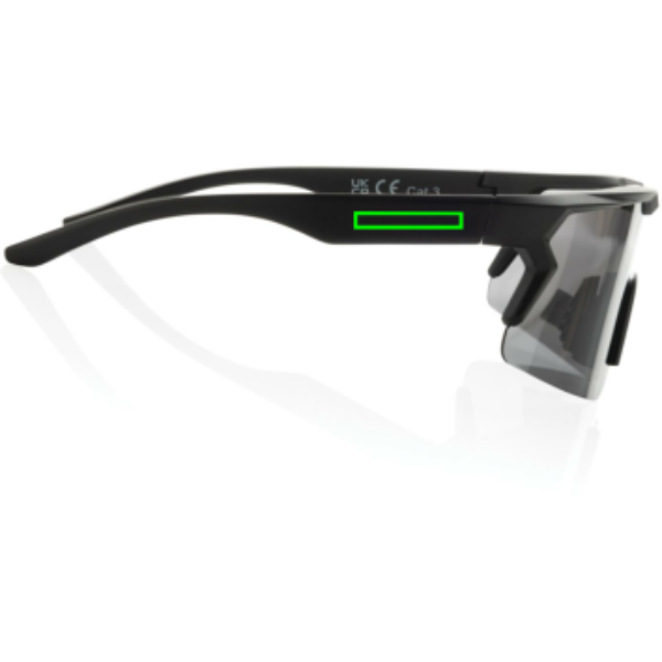 Sportliku disainiga polariseeritud päikeseprillid, mis on valmistatud RCS-sertifikaadiga taaskasutatud plastikust. Taaskasutuse kogusisaldus: 65% eseme kogukaalust. RCS-sertifikaat tagab taaskasutatud materjalide täielikult sertifitseeritud tarneahela. Kaasa arvatud taaskasutatud RPET-ümbris prillide hoiustamiseks. Prilliklaasid on polariseeritud, mis välistab päikesevalguse peegeldumise, muutes need ideaalseks sportimiseks ja välitegevusteks. Vastab standarditele EN ISO 12312-1, UV 400 ja CAT 3. Pakitud FSC® kinkepakendisse.