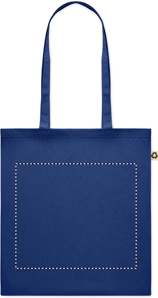 Tarbimisjärgsest taaskasutatud puuvillasest ostukott (65% taaskasutatud puuvill, 35% tavaline puuvill) pikkade sangadega. 140 gr/m².