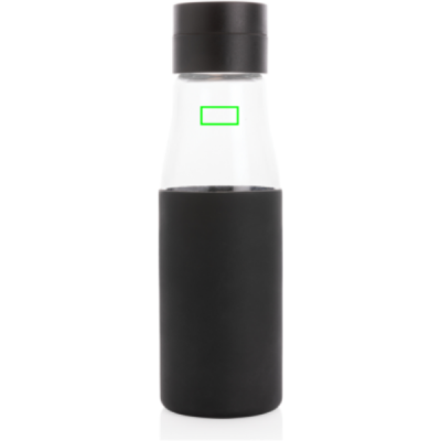 Logotrade reklaamtoote foto: Ukiyo klaasist hüdratatsiooni jälgiv varrukaga pudel