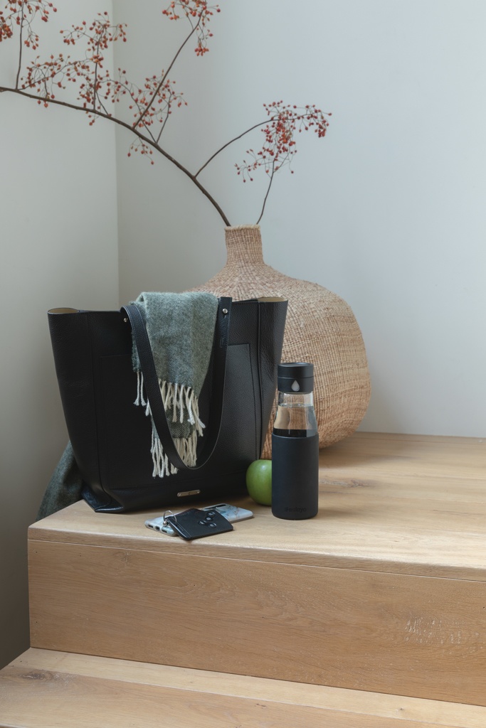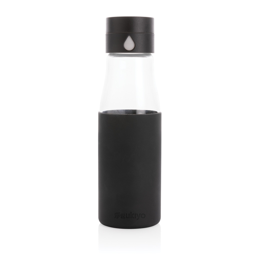 Ukiyo klaasist hüdratatsiooni jälgiv varrukaga pudel, must