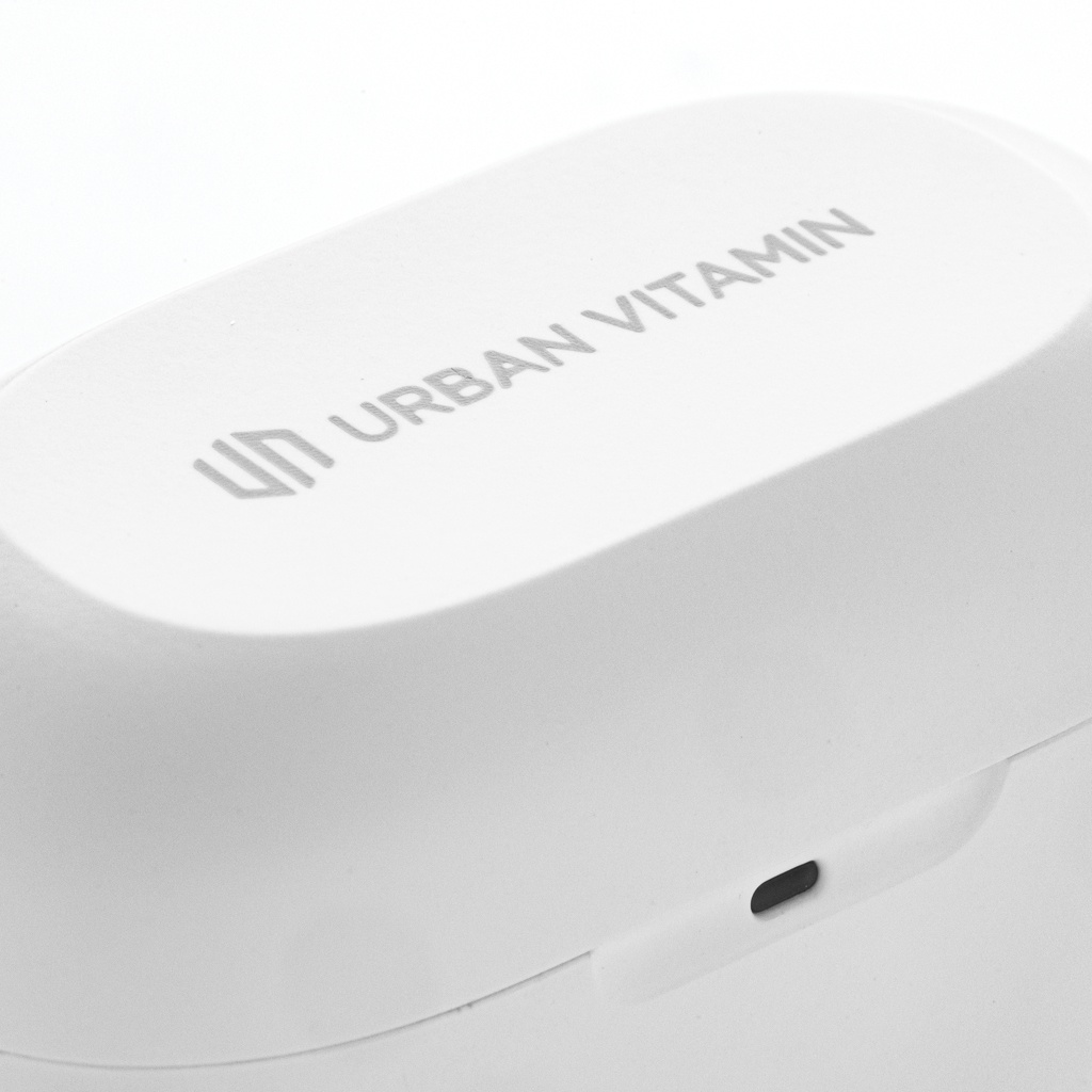 Kui avate ümbrise ja paned kõrvaklapid sisse, tabab teid intensiivne bass. Kuidas saab nii kompaktne ja kaasaskantav ese pakkuda nii rikkalikku ja sügavat heli? Kõrvaklapid ja kaasaskantav laadimisümbris on loodud nii, et neid saaks kaasas kanda ükskõik kuhu lähete ja mahuvad hõlpsalt taskusse. Mugavatel kõrvaklappidel on kuni 5 tundi kuulamisaega ja laadimisümbris võimaldab kuni 20 tundi taasesitust. Piisab, et hoida teid terve päeva! Kõne vastuvõtmisel vastake sellele lihtsalt stereoheliga tänu kahele integreeritud mikrofonile. Integreeritud puutetundliku juhtimise funktsiooniga peate kristallselge kvaliteediga vastamiseks vaid kõrvaklappi puudutama. IPX 5 reiting muudab kõrvaklapid ilmastiku-, higi- ja pritsmekindlaks, nii et pole vaja neid õue viia. Urban Vitamin tooted on valmistatud ilma PVC-ta ja pakendatud plastikpakendisse.