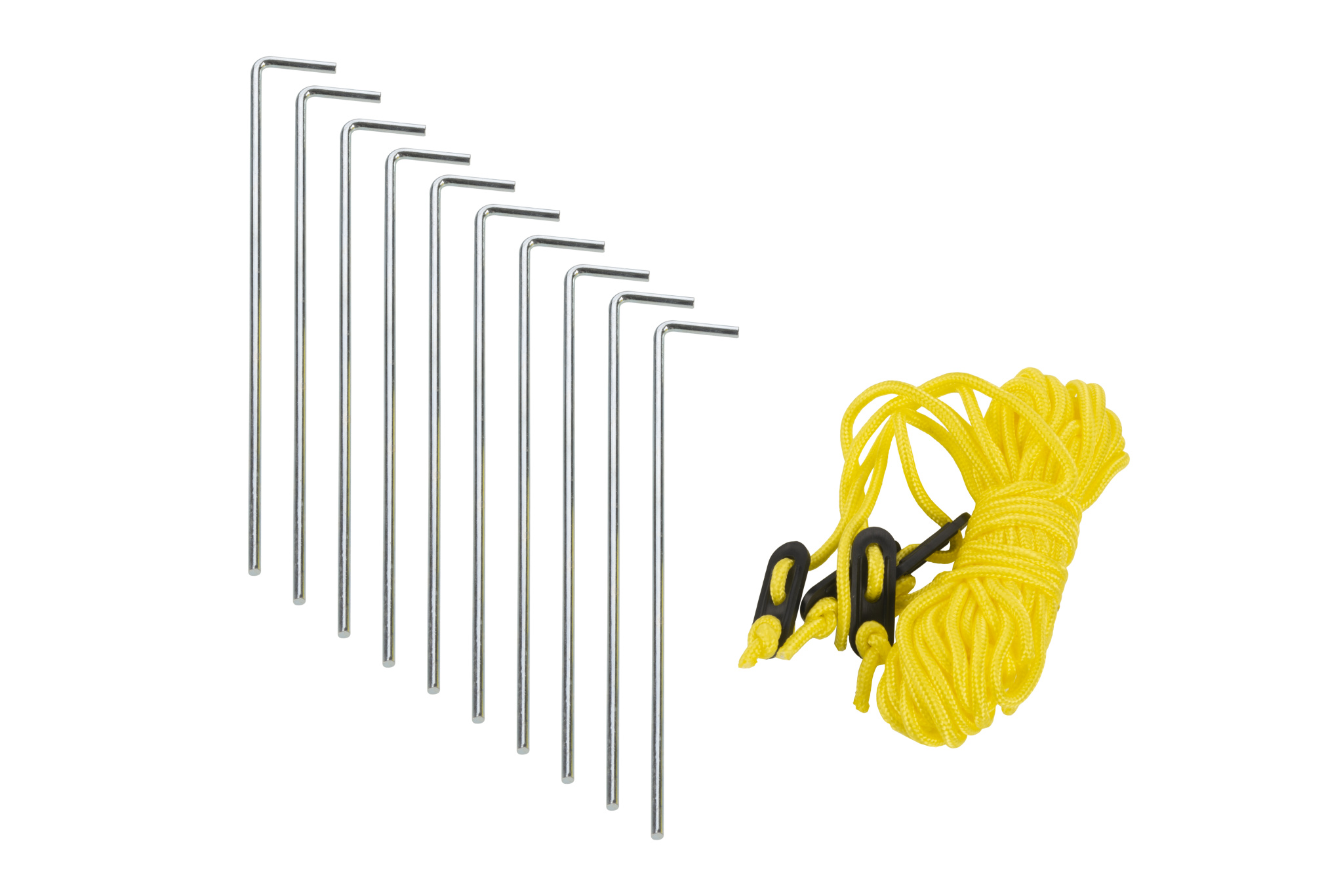 Varjualune 2 inimesele. Varjualune on suurepärane ranna- ja telkimistarvik, mis kaitseb teid päikese ja tuule eest. Sellel on 300 mm veesammas ja UV-filter UV40+. See on pakitud nööriga kotti, mis sisaldab varjualust, klaaskiust konstruktsiooni, 8 roostevabast terasest pulka ja 4 köit. Materjalid: varjualune – 190 PA (polüamiid), põrand PE, konstruktsioon – klaaskiudpost