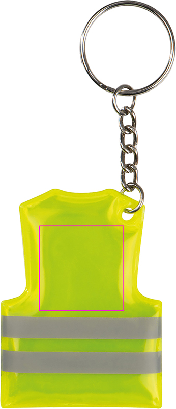 Helkurribadega turvavesti kujuline võtmehoidja. Trükime teie logo triipude kohale.