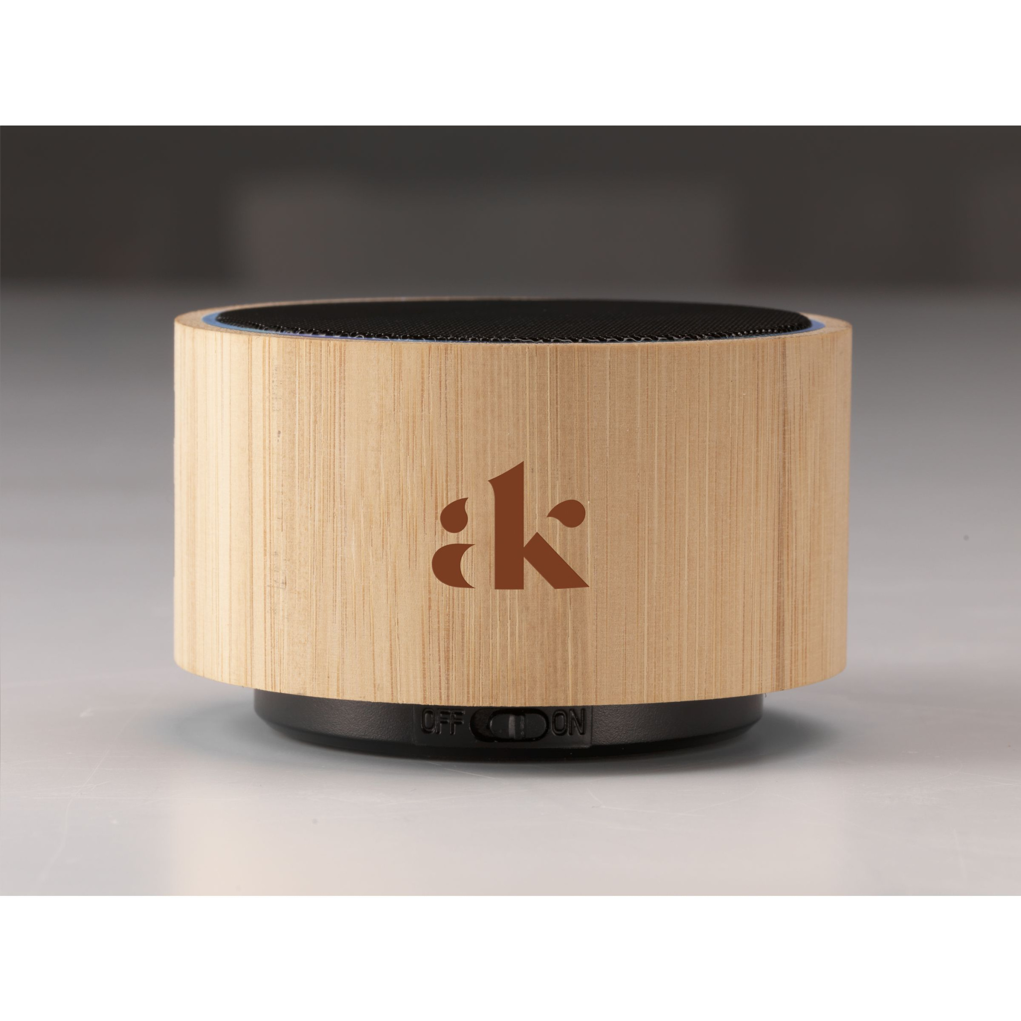 Bluetooth 3W juhtmevaba kõlar integreeritud meeleoluvalgustusega. Kõlari korpus on valmistatud naturaalsest bambusest. 3 W võimsusega kõlar toodab kristallselget heli. Sisseehitatud, taaslaetav 300 mAh liitiumaku. Täielikult laetud aku annab kõlarile toiteks kuni 3 tundi pidevat kasutamist. Juhtmevaba leviala kuni 10 meetrit. Lihtne kasutada ja ühildub enamlevinud nutitelefonide ja tahvelarvutitega. Sisend: DC5V. Väljund: 3,7V/3W. Kaasas Type-C laadimiskaabel ja kasutusjuhend. Iga toode tarnitakse eraldi pruunis pappkarbis.
