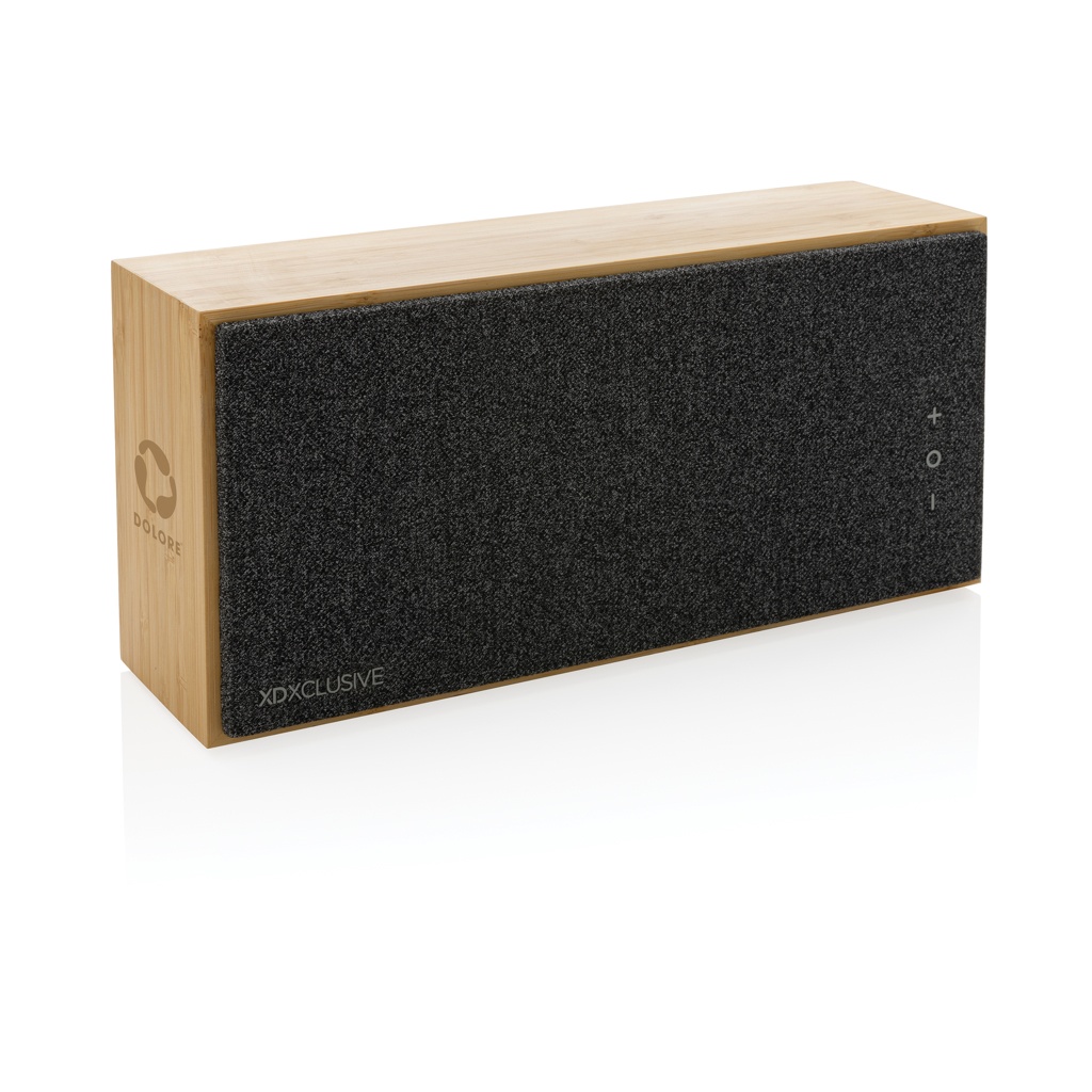 Luksuslik ja võimas 20 W kõlar selge heli ja tugeva bassiga. Väliskest on valmistatud FSC 100% sertifitseeritud bambusest. Plastosad on valmistatud RCS (Recycled Claim Standard) sertifitseeritud ringlussevõetud ABS-ist. Kogu taaskasutatud sisaldus: 17% toote kogukaalust. RCS-sertifikaat tagab taaskasutatud materjalide täielikult sertifitseeritud tarneahela. Kõlariga on kaasas BT 5.1, mis tagab lihtsa ja sujuva töö kuni 10 meetri kaugusel ning väikese energiatarbimise. 1200 mah aku võimaldab mängida kuni 6 tundi ja seda saab täielikult laadida 3 tunniga. Vastuvõtufunktsiooni ja mikrofoniga (video)kõnedele vastamiseks. Pakitud FSC mix kraft karpi. Kaasa arvatud RCS-sertifikaadiga taaskasutatud TPE laadimiskaabel.