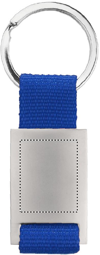 Metallinen avaimenperä värillisellä polyesterinauhalla.