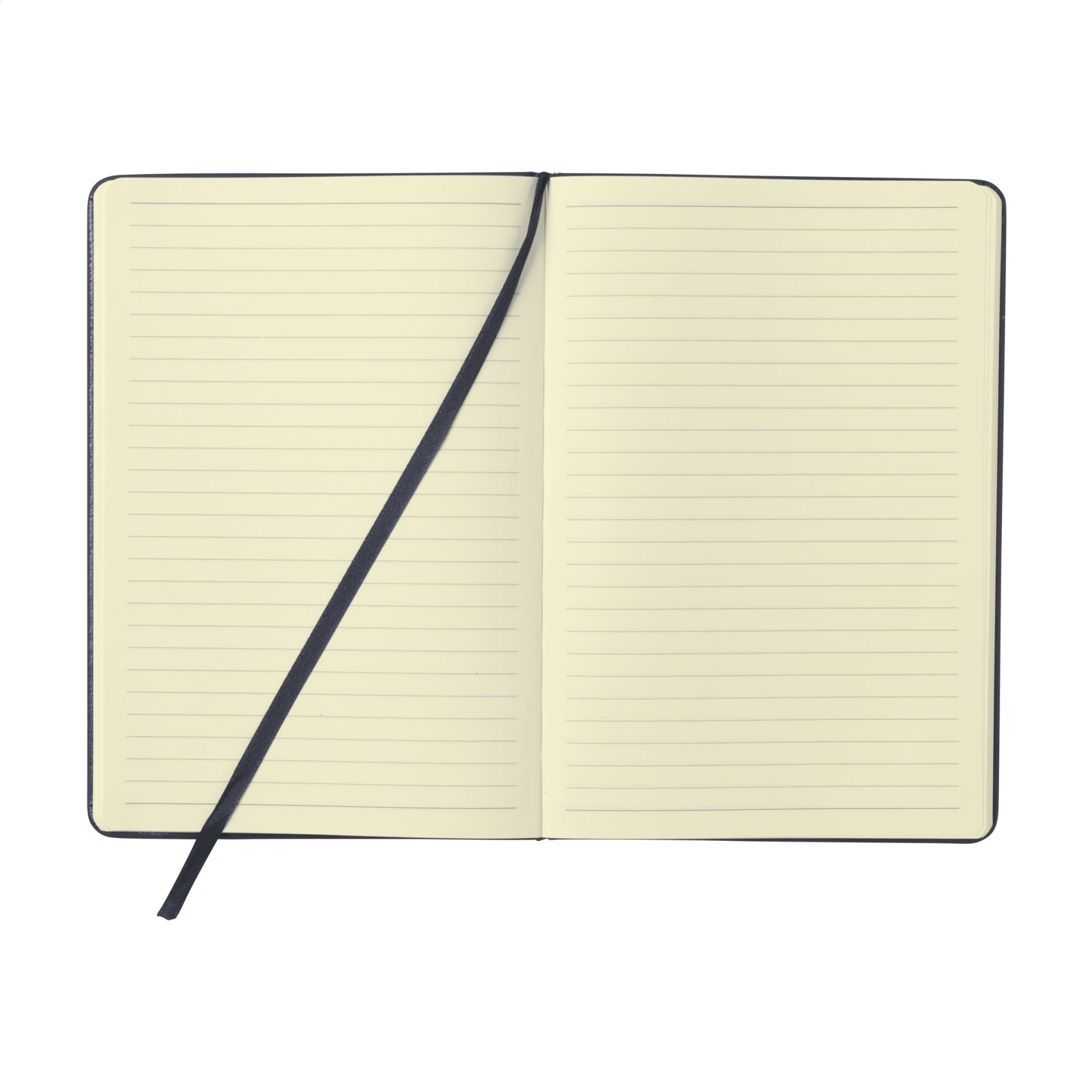 Käytännöllinen muistivihko A5-muodossa. Kovalla PU-päällysteellä, n. 80 arkkia/160 sivua kermanväristä, vuorattua FSC Mix -sertifioitua paperia (70 g/m²), joustava suljin ja nauhamerkki.