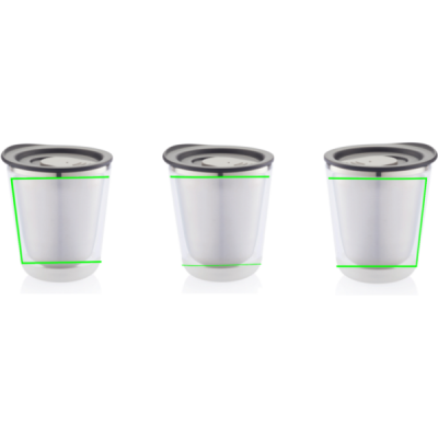 Suljettava, eristetty ja riittävän kompakti sopimaan kahvinkeittimen alle (227 ml). Myös erittäin hygieeninen, sillä kaatimen sisäpinta on tehty ruostumattomasta teräksestä, ei muovista. Suunniteltu niin, että muki on helppo purkaa kierrätystä varten. Rekisteröity design®.