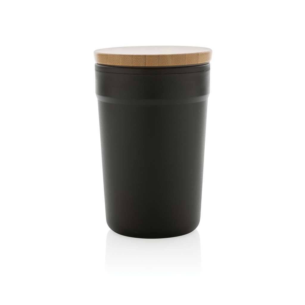 Tämä kaunis matkamuki bambukannella on valmistettu GRS sertifioidusta kierrätetystä PP:stä. GRS sertifiointi varmistaa kierrätettyjen materiaalien täysin sertifioidun toimitusketjun. Matkamukissa on bambukansi. Kierrätetyn materiaalin kokonaismäärä: 52% perustuen tuotteen painoon. Mukin runko voidaan laittaa mikroaaltouuniin ja pestä astianpesukoneessa. BPA-vapaa. Tilavuus 300ml. Sisältää FSC®-sertifioidun kraft-laatikon.
