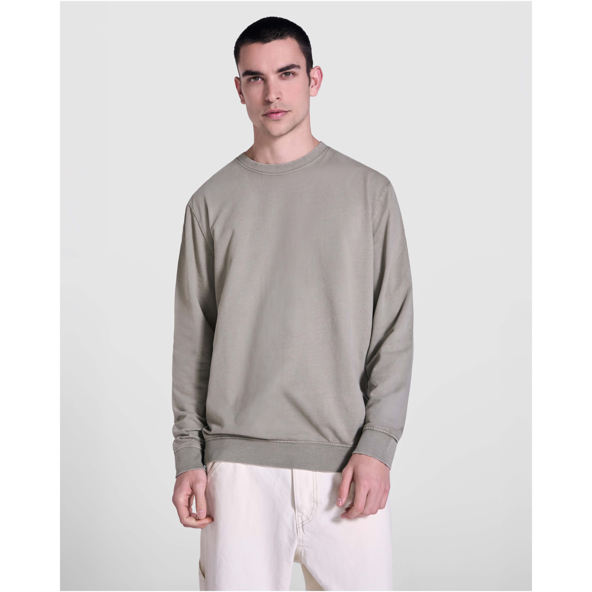 Unisex-svetari happopesuviimeistelyllä. 2 x 1-uurrettu kaulus, hihansuut ja helma sävy sävyyn. Vahvistetut saumat hihansuissa, helmassa, vyötärönauhassa ja kainaloissa. Sävy sävyyn -peittotikkaus pääntiessä.