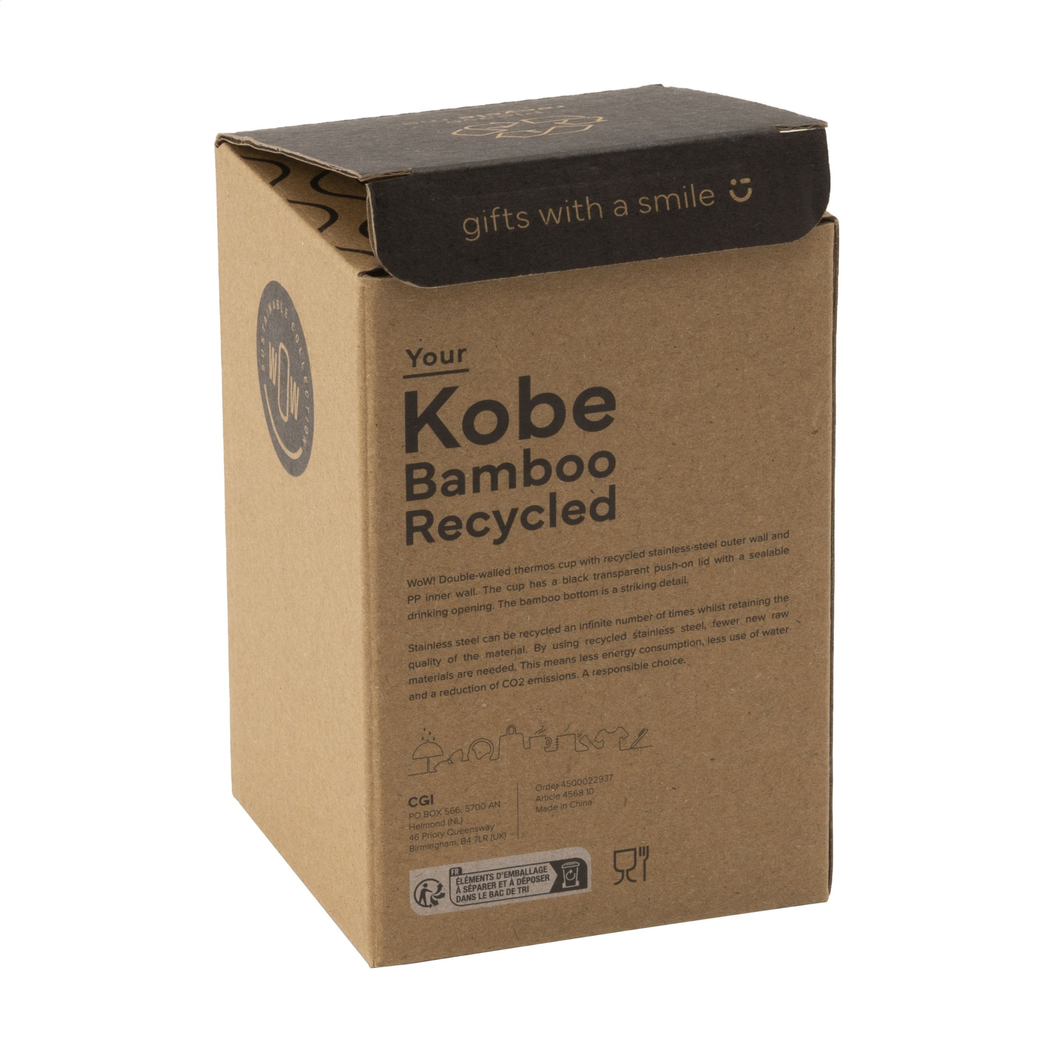 Logo trade mainostuote kuva: Kobe Bamboo RCS kierrätetystä teräksestä valmistettu 350 ml kahvikuppi