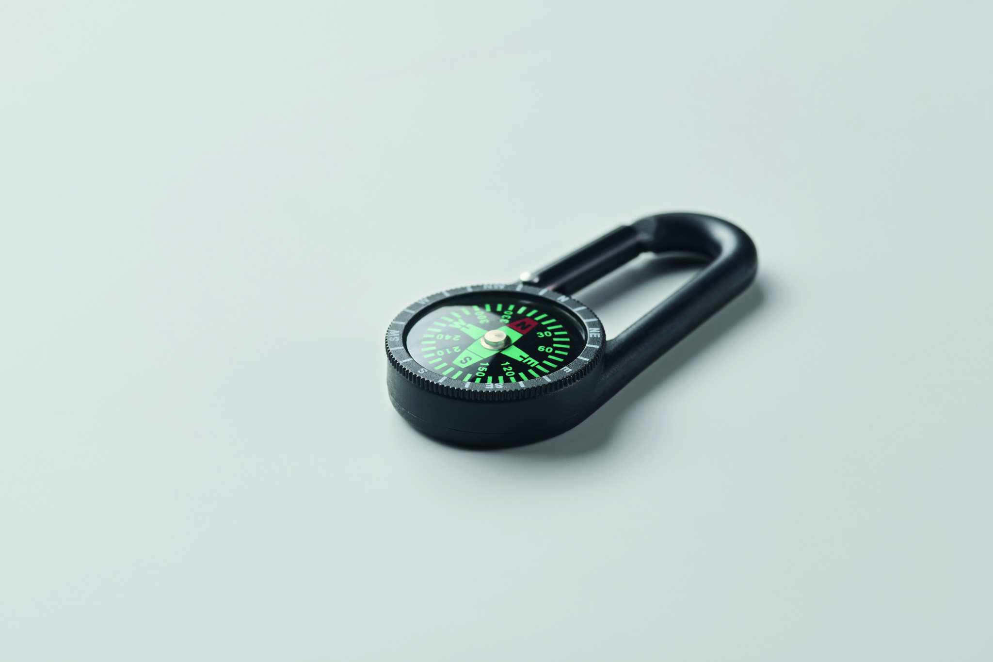 ABS-minikompassi karabiinilla. Karabiini ei ole tarkoitettu kiipeilyyn (ei-ammattimaiseen käyttöön).