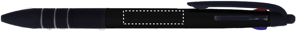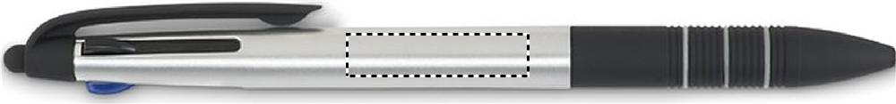 Kuulakärkikynä kosketusnäyttöpäällä ja 3 musteen väriä punainen, sininen ja musta.