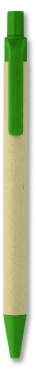 Painomekanismilla varustettu kuulakärkikynä sinisellä musteella, paperisella rungolla ja muoviosat polyaktidia (100% biohajoavaa maissia).