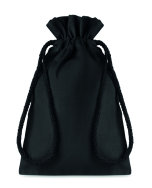 105 g/m² pieni puuvilla lahjapussi narukiristyksellä, 14 x 22 cm. Valmistettu sertifioidun standardin mukaisesti haitallisten aineiden käytölle tekstiileissä.