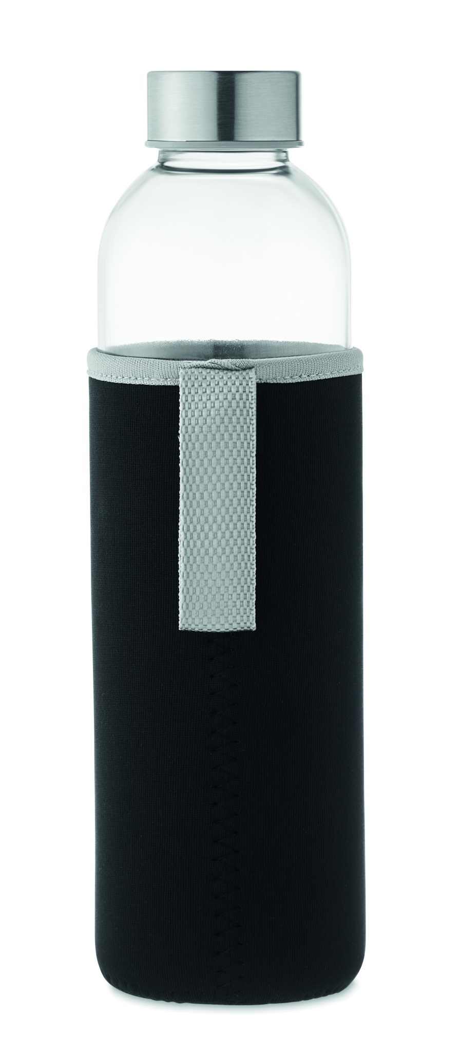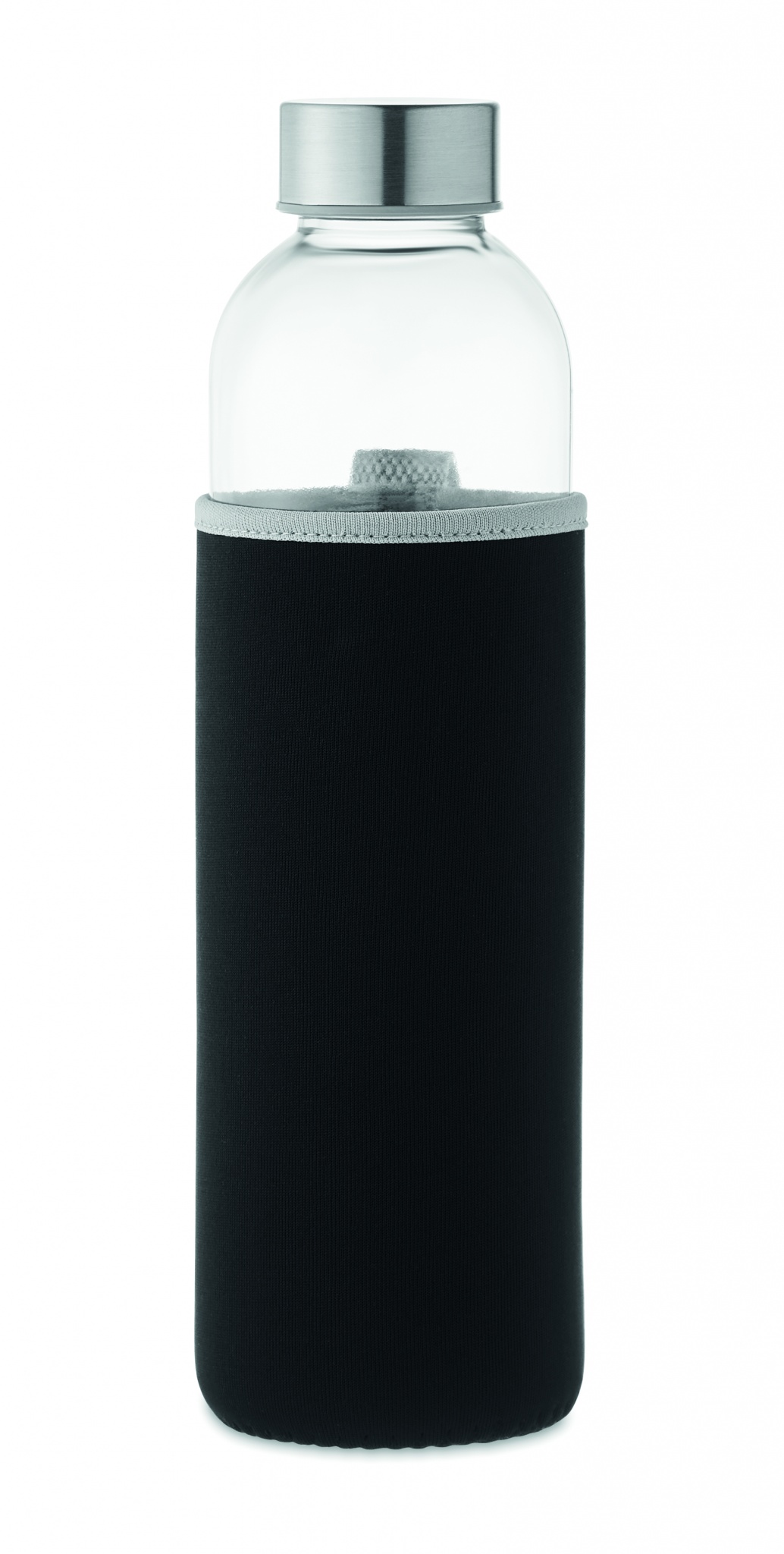 Lasinen 750 ml juomapullo neonpreeni pussissa. Tuote ei sovellu käytettäväksi hiilihapollisilla nesteille, vuoto vapaa.