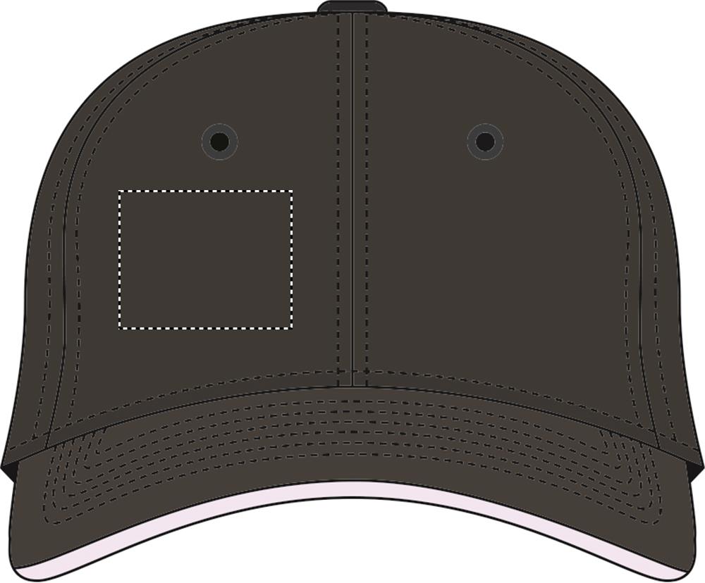 6-paneelinen lippalakki harjattua paksua puuvillaa, säädettävä metallinen solki ja läpivienti nauha. Sandwich-tehoste lipassa, koko 7 1/4