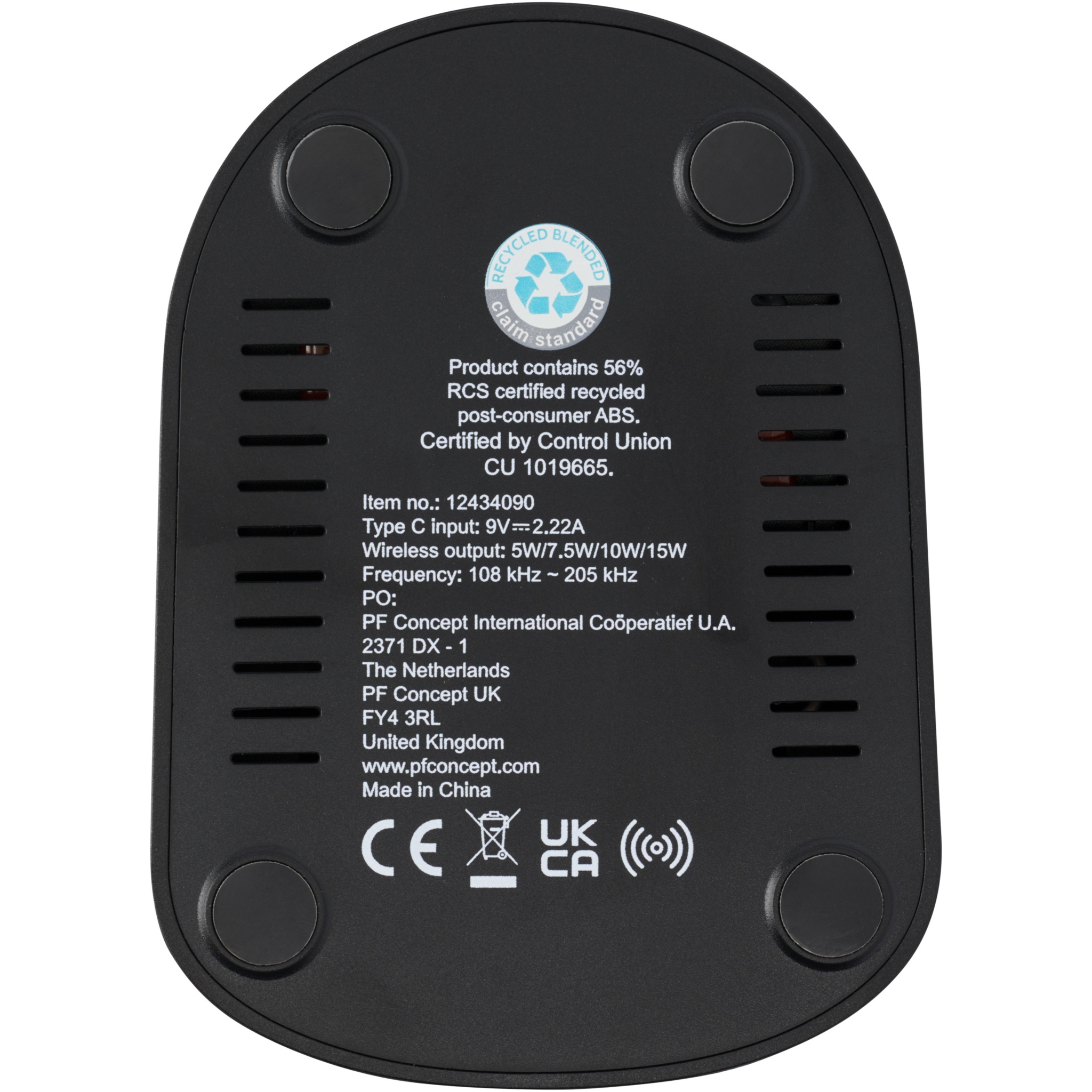 Logo trade liikelahja mainoslahja tuotekuva: Loop 15 W:n langaton kaksisuuntainen latausteline RCS-kierrätetystä muovista