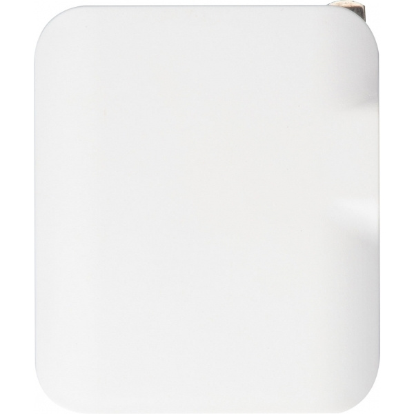 Matkasovitin Eurooppaan, Yhdysvaltoihin, Iso-Britanniaan ja Australiaan. Sisältää 2 USB-lähtöä 2.100 mA. Logosi tulostetaan sovittimen toiselle puolelle.