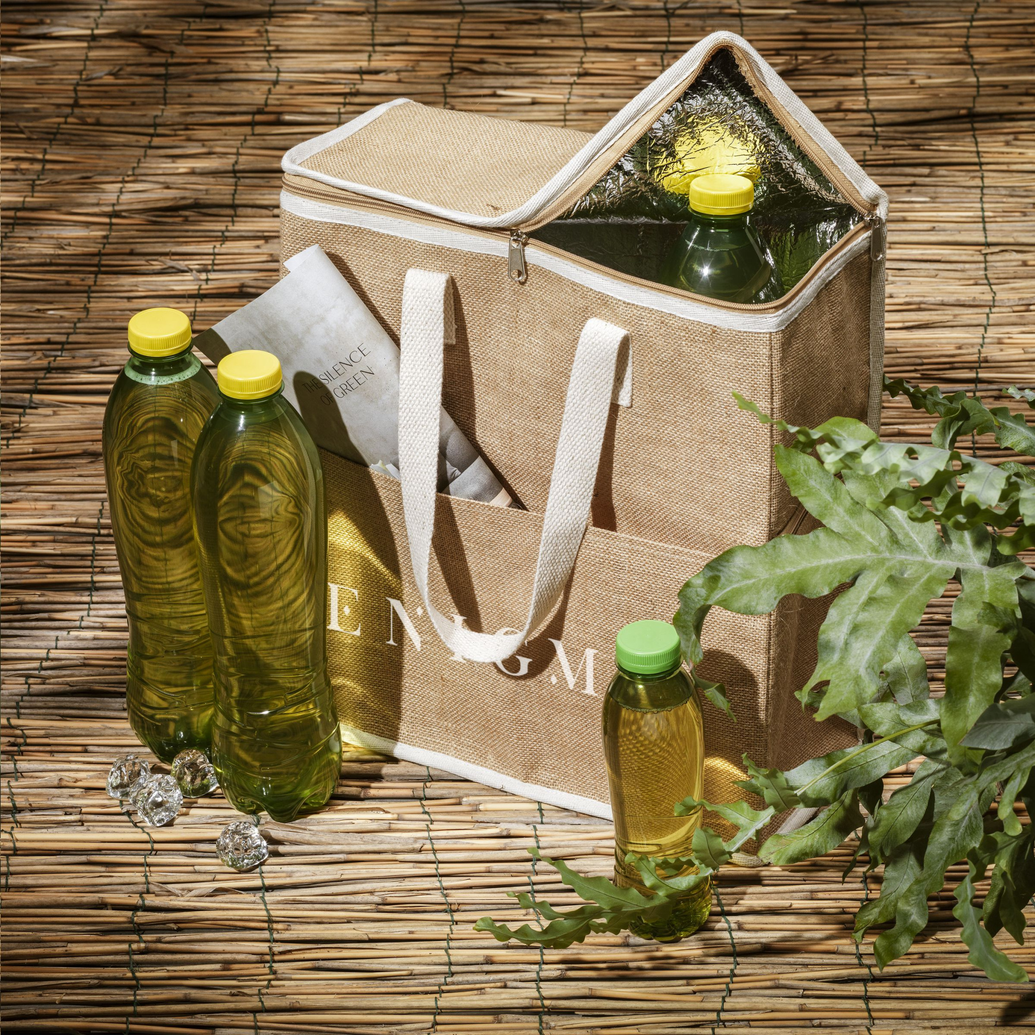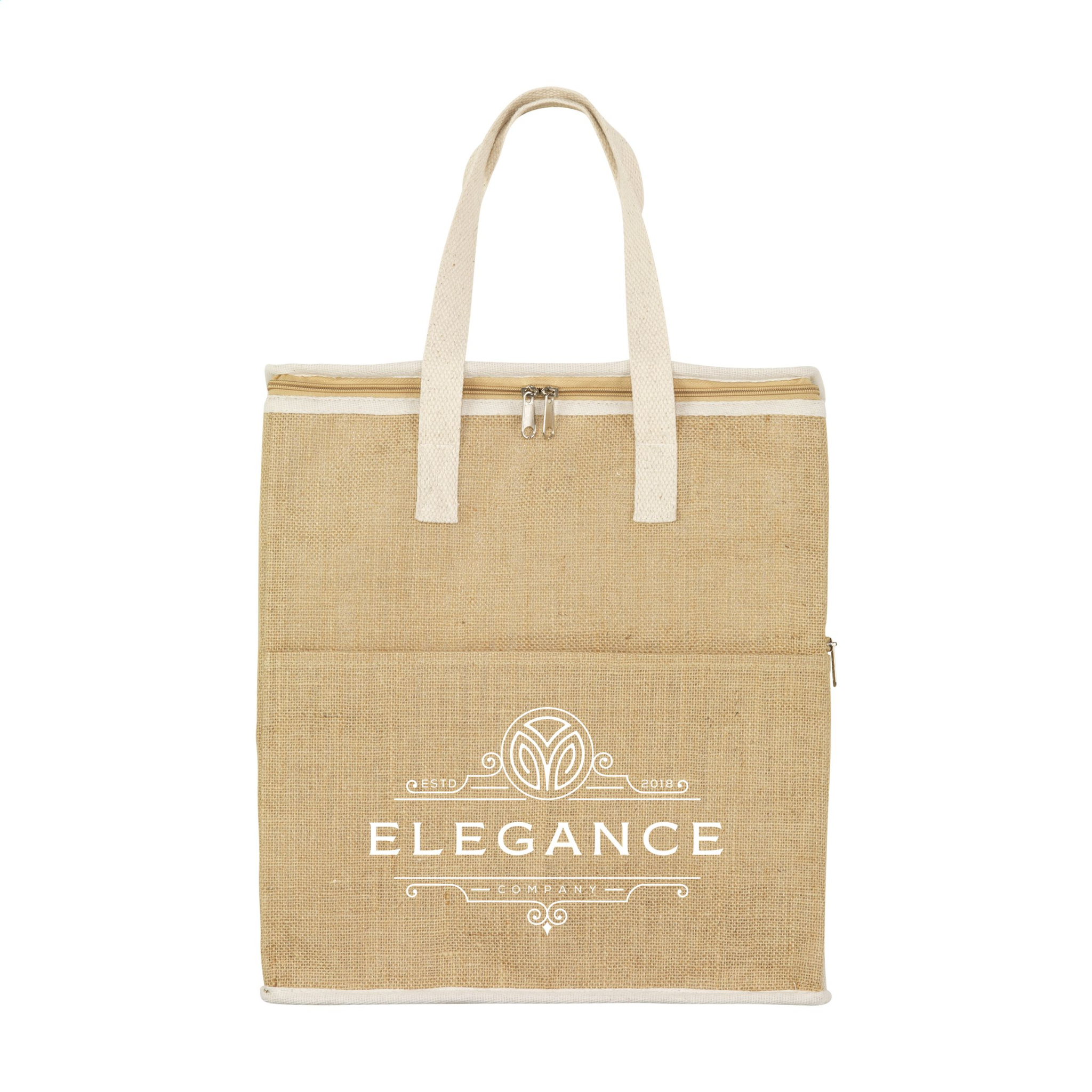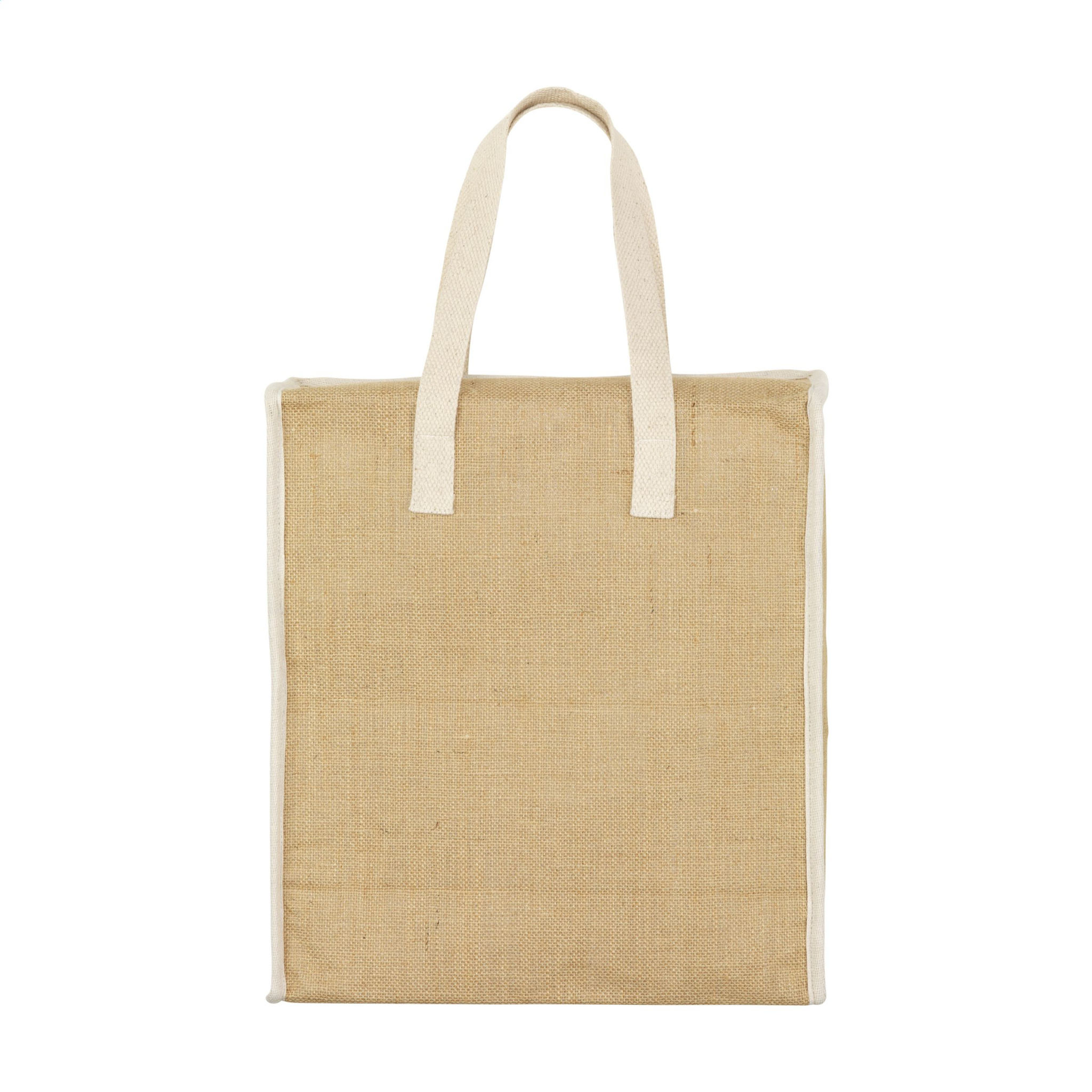 Vau! Tämä kylmälaukku, joka on valmistettu tukevasta juutti- ja puuvillamateriaalista, jossa on eristetty sisäpuoli. Pidä ruokasi ja juomasi viileinä päivän aikana tässä erittäin tilavassa kylmälaukussa. Tässä laukussa on vetoketju ja etutasku, jotka tarjoavat lisää säilytystilaa. Nämä lisätaskut ovat käteviä tavaroiden, joita ei tarvitse jäähdyttää, kuten puhelimen tai lompakon säilyttämiseen. Mukana kudotut puuvillakahvat. Kapasiteetti n. 24 litraa.