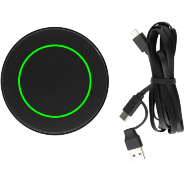 10W langaton laturi kaksoisliitäntäkaapelilla (USB A ja USB C). Laturin runko valmistettu RCS sertifioidusta kierrätetystä ABS muovista, ja johto kierrätetystä TPE:stä. Kierrätetyn materiaalin kokonaismäärä: 58% perustuen tuotteen painoon. RCS (Recycled Claim Standard) on standardi, jolla varmennetaan tuotteen kierrätetty materiaali koko toimitusketjun ajan. RCS-standardia käytetään, kun osa tuotteesta on valmistettu kierrätetystä materiaalista. Langaton laturi sopii yhteen Androidin uusimpien sukupolvien, sekä iPhone 8 ja uudempien, laitteiden kanssa. Sisääntulo: 9V/1.5A. Langaton ulostulo: 9V/1.1A 10W. Tuote ja lisätarvikkeet PVC-vapaita. Sisältää 150cm kierrätetystä TPE:stä valmistetun kaapelin, jonka voi yhdistää sekä USB A ja USB C adaptereihin.