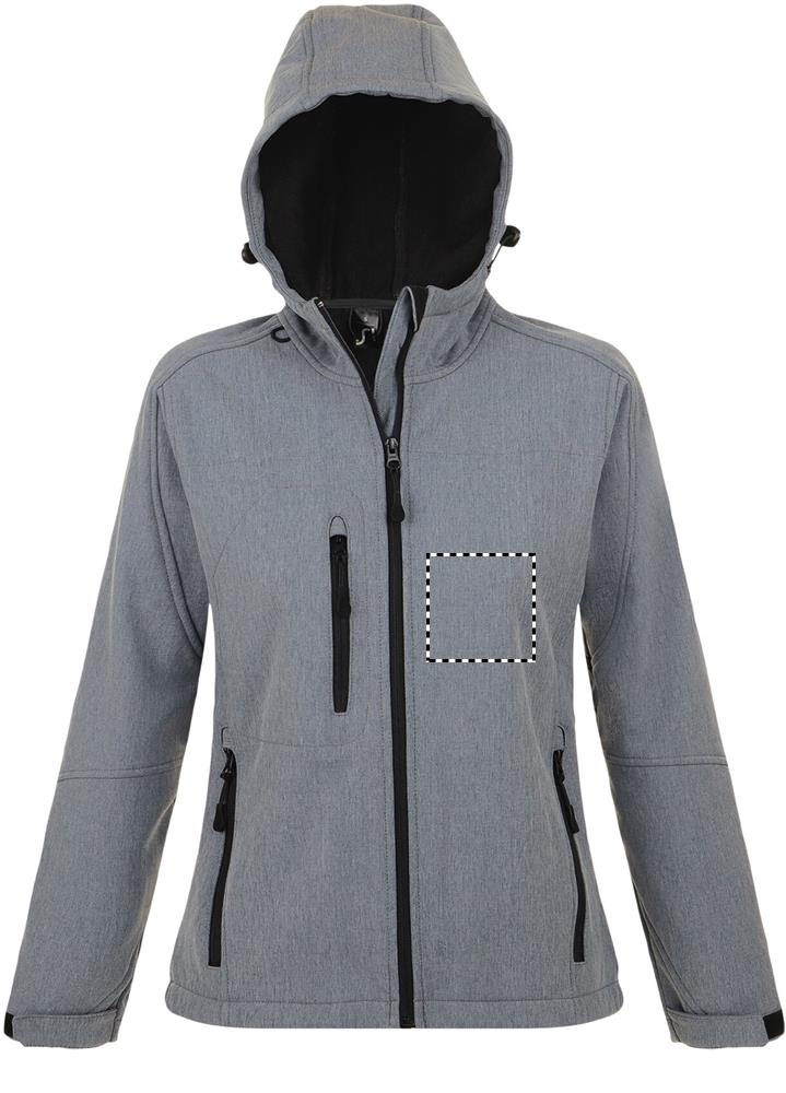 SOL'S REPLAY naisten takki 340g. 2 vetoketjullista sivutaskua ja 1 vetoketjullinen rintatasku. Säädettävä vyötärön kiristysnauha. Säädettävät hihansuut itsekiinnittyvällä kiinnikkeellä. Huppu kiristysnauhalla. Kankaan yksityiskohdat: 94 % polyesteri - 6 % elastaani. Fleecevuori: 100 % polyesteriä. 3 kerrosta. 8000 mm vedenpitävä ja hengittävä kalvo. OEKO-TEX®. Myydään vain painatuksen kanssa.