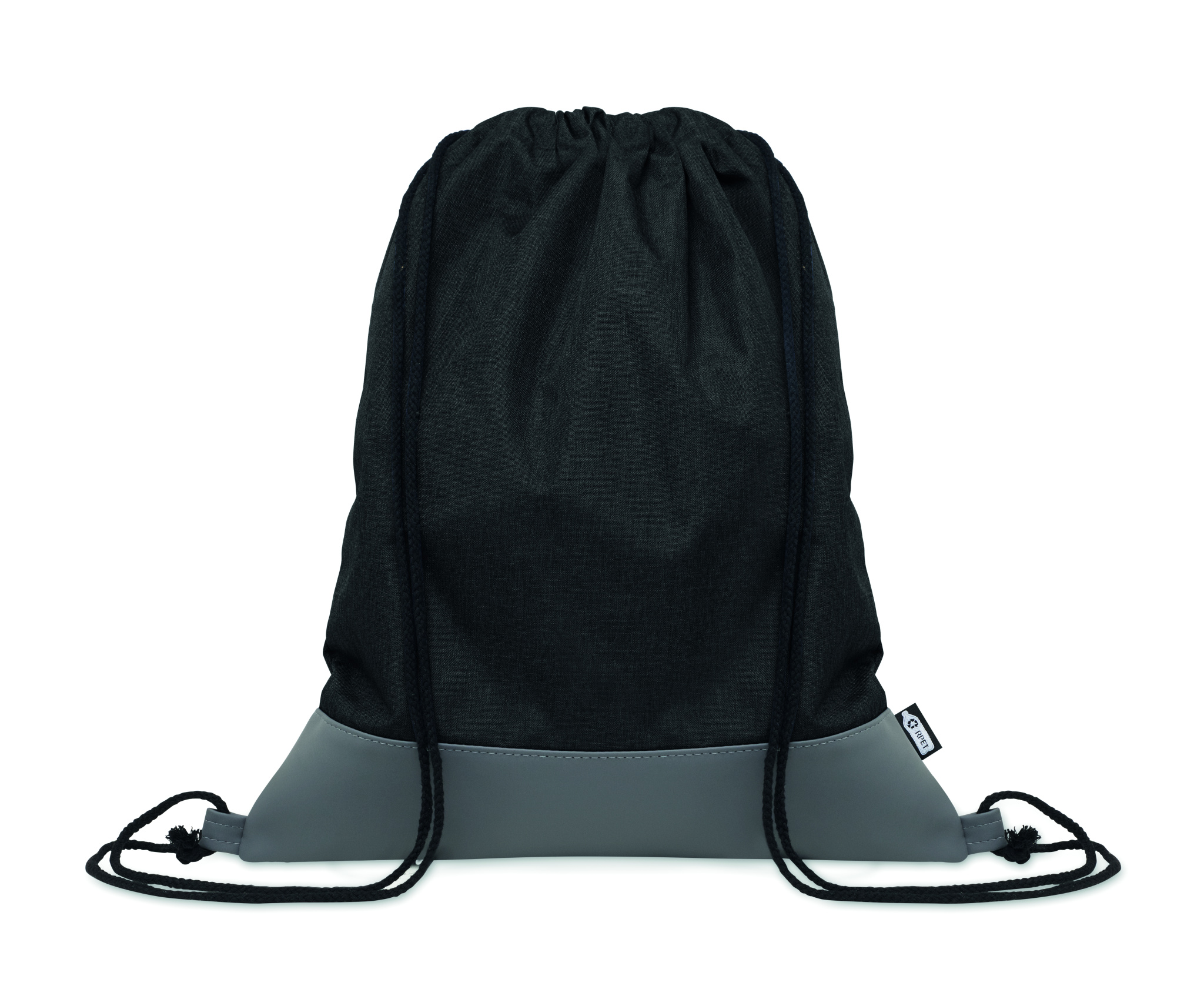 Kiristysnyörillä oleva laukku 2-sävyistä 300D RPET -polyesteriä, jossa pehmeä PU-yksityiskohta ja polycotton-nyöri.