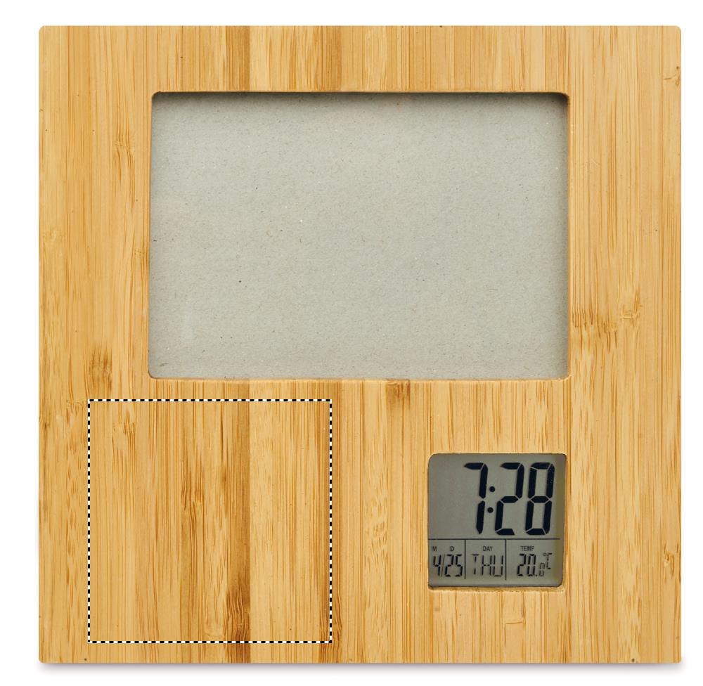 Bambusta valmistettu sääasema valokuvakehyksellä. Näyttää ajan, päivämäärän ja lämpötilan, herätyskello/ ajastin toiminto. Luonnollisen materiaalin (bambu) vuoksi, tuotteiden värissä/ koossa saattaa olla erinäisyyksiä ja tämä voi vaikuttaa painatuksen lopputulokseen. 2 AAA patteria ei sisälly toimitukseen.
