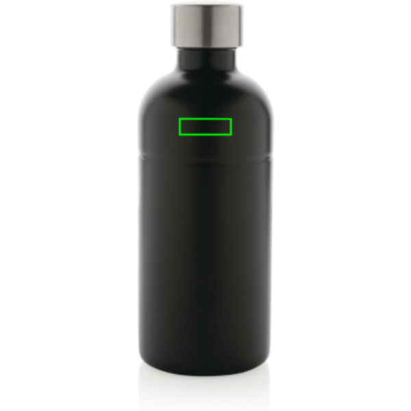 Tämä pullo on valmistettu kierrätetystä ruostumattomasta teräksestä ja se on täydellinen jokapäiväiseen käyttöön. Ainutlaatuinen muotoilu mahdollistaa sen käytön jopa hiilihapollisille juomille, ja sen tiiviys on taattu. Valmistettu RCS (Recycled Claim Standard) -sertifioiduista kierrätysmateriaaleista. RCS-sertifiointi varmistaa, että kierrätysmateriaalien toimitusketju on täysin sertifioitu. Kierätetyn materiaalin kokonaismäärä: 85% kokonaispainosta. BPA-vapaa. Tilavuus 800 ml. Mukana FSC®-sertifioitu kraft-pakkaus. Rekisteröity muotoilu®.