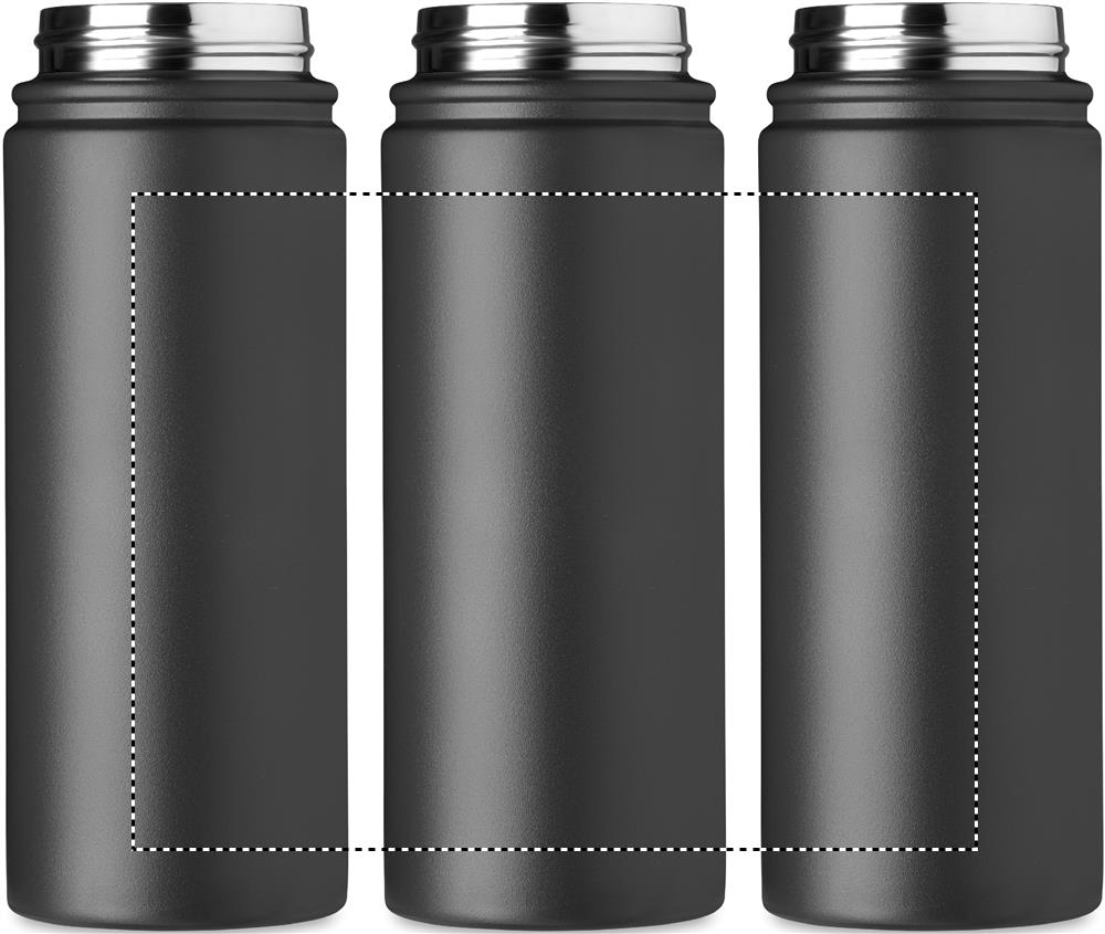 Kaksiseinäinen ruostumattomasta teräksestä valmistettutermospullo, jossa on kaksoiskorkki, juomista varten pienempi kierrekorkki ja ripustuslenkki. Tilavuus 500 ml.