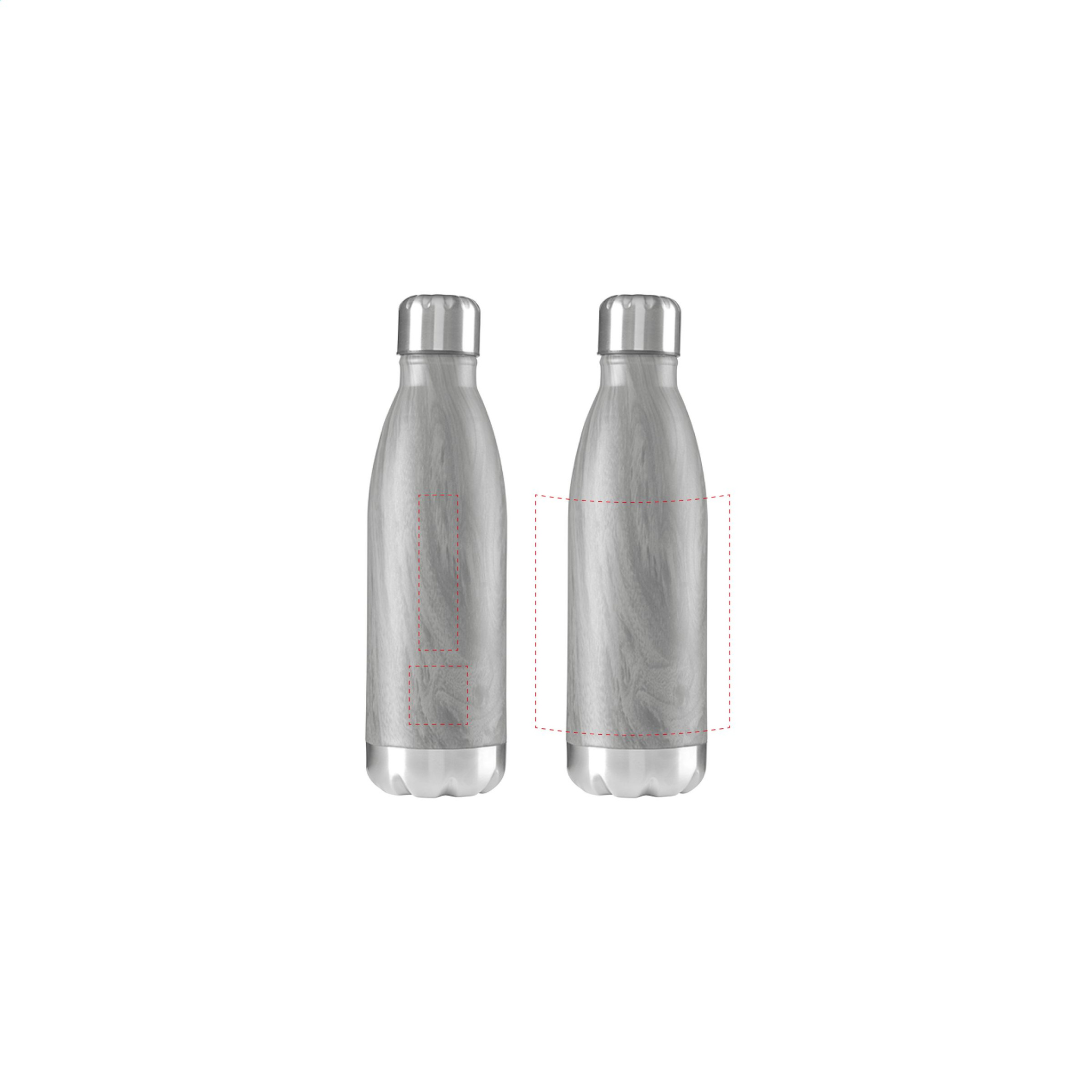 Kaksiseinäinen, tyhjiöeristetty, ruostumattomasta teräksestä valmistettu vesipullo. Vuotamattomalla kierrekorkilla. Tässä tyylikkäässä mallissa on silmiinpistävä, viehättävä pintakerros, jossa on puun syykuvio. Soveltuu kylmän tai kuuman veden lämpötilan ylläpitämiseen. Tilavuus 500 ml. Jokainen tuote on pakattu erikseen.