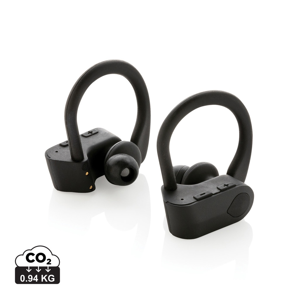 Logo trade mainostuote kuva: TWS urheilukuulokkeet latauskotelossa