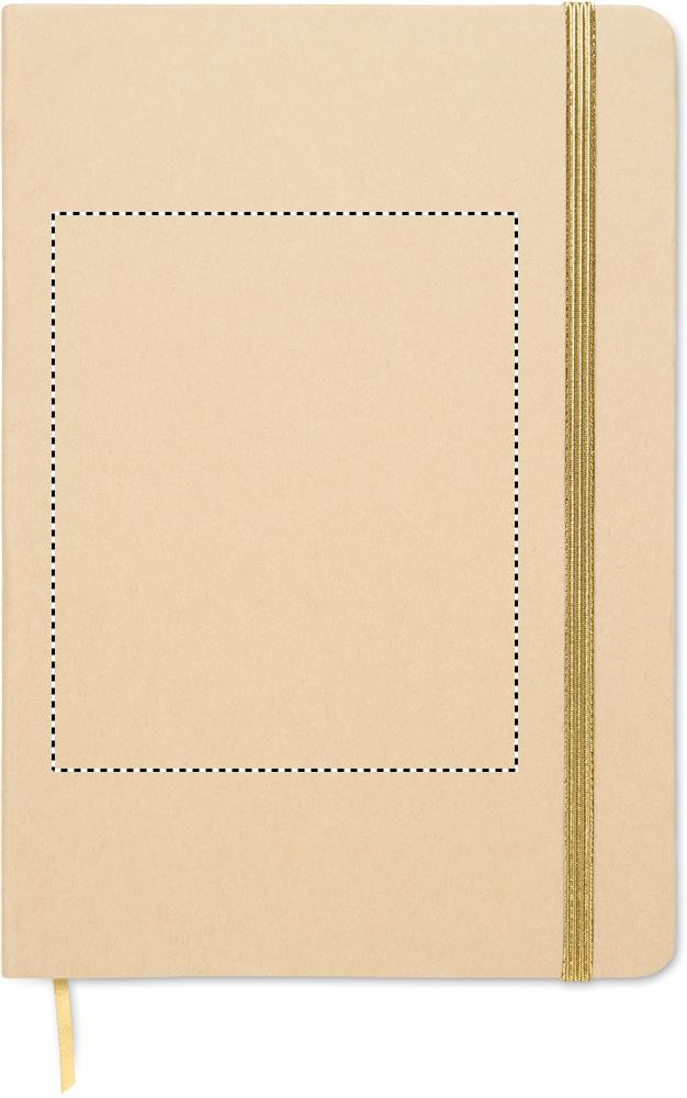 A5-kokoinen muistikirja kovalla kierrätetyllä kartongilla. Beige kansi. Asia sidottu. 160 rivillistä kierrätyspaperisivua (80 arkkia). Joustava sulkuhihna, kirjanmerkki nauha, joka sopii paljastettuun väriin. Laserkaiverruksen jälkeen väri paljastuu.