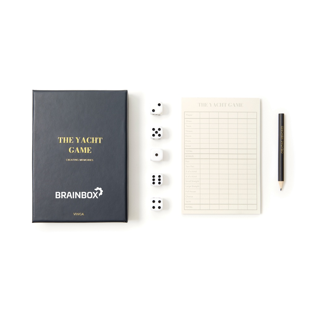 Erä täyskättä, nelosia vai yatzia? Viiden nopan peli toimitetaan tyylikkäässä kultakuvioisessa lahjapakkauksessa, joka on ilo antaa sekä lahjaksi että pitää omalla sohvapöydällä valmiina pelihetkeen. *Muutos tulossa: huomioi, että päivitämme tuotteen nimen Yahtzee -pelistä Yacht -peliin. Tuote ja toiminnot ovat 100% samat, vain nimi muuttuu tulevassa tuote-erässä.