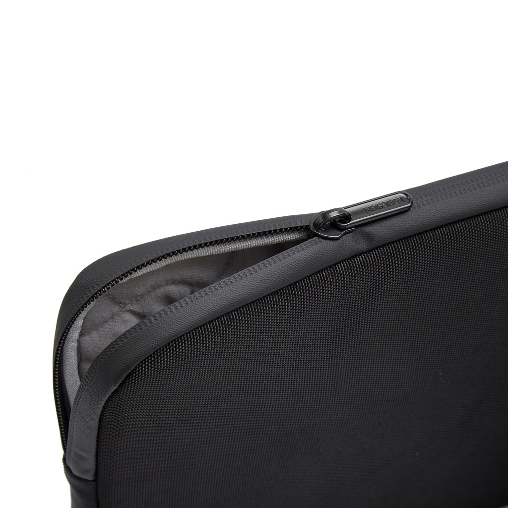 XD Design 16" tietokonetasku klassisessa mustassa värissä on luotettava läppärisuoja. Valmistettu rPET 1200D-kankaasta vettähylkivällä pinnalla ja viileänharmaalla fleecevuorella. Vedenpitävä vetoketju parantaa kestävyyttä. Valmistettu kierrätetyistä materiaaleista pitäen ympäristön mielessä. AWARE™ teknologian käyttö takaa sen, että kierrätettyjen kangasmateriaalien käyttö sekä vedensäästöväitteet on todennettu.