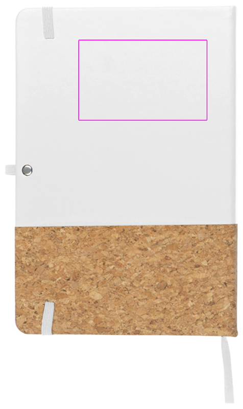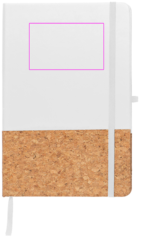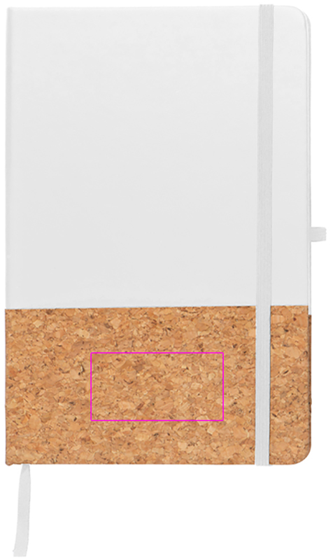 A5 formato užrašų knygelė su 160 linijinių puslapių ir PU kamštienos viršeliu, žyme, tušinuko kilpa ir elastine užsegimo juostele. Priekyje atspausdiname Jūsų logotipą.