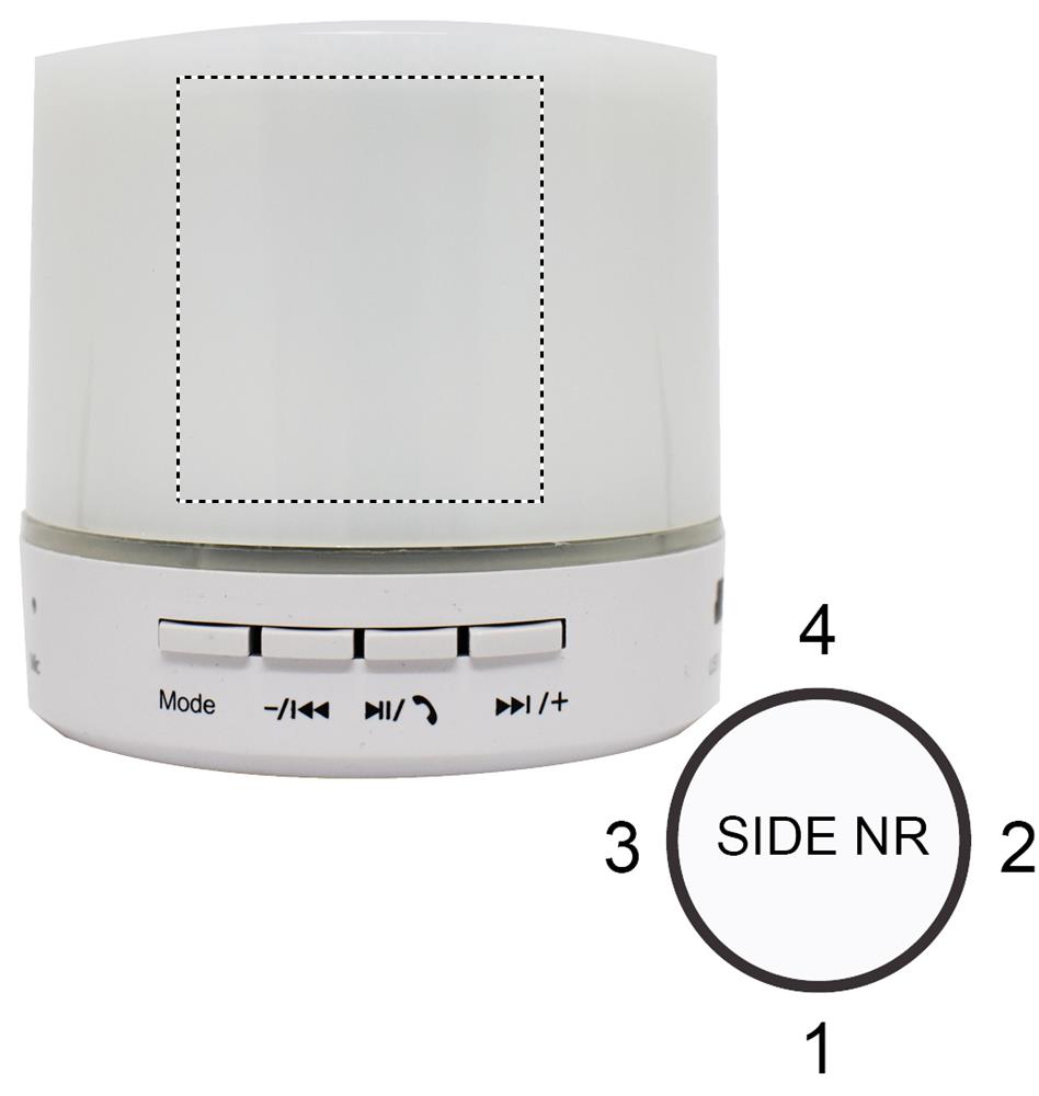 2.1 belaidis garsiakalbis su LED šviesos indikacija iš ABS. 3 spalvos keičiasi šviesa. Komplekte 1 įkraunama ličio 450 mAh baterija. Yra SD kortelės prievadas ir AUX/USB laidas. Skambinimo laisvų rankų funkcija. Išėjimo duomenys: 3W, 4 Ohm. Žaidimo laikas apytiksl. 2h.