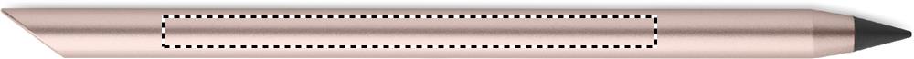 Ilgaamžis perdirbto aliuminio rašiklis be rašalo. Rašiklis rašo grafito antgaliu, turinčiu plastikinį apsauginį dangtelį.