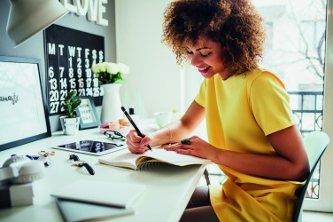 užrašų knygeles ir rašiklius iš perdirbto popieriaus