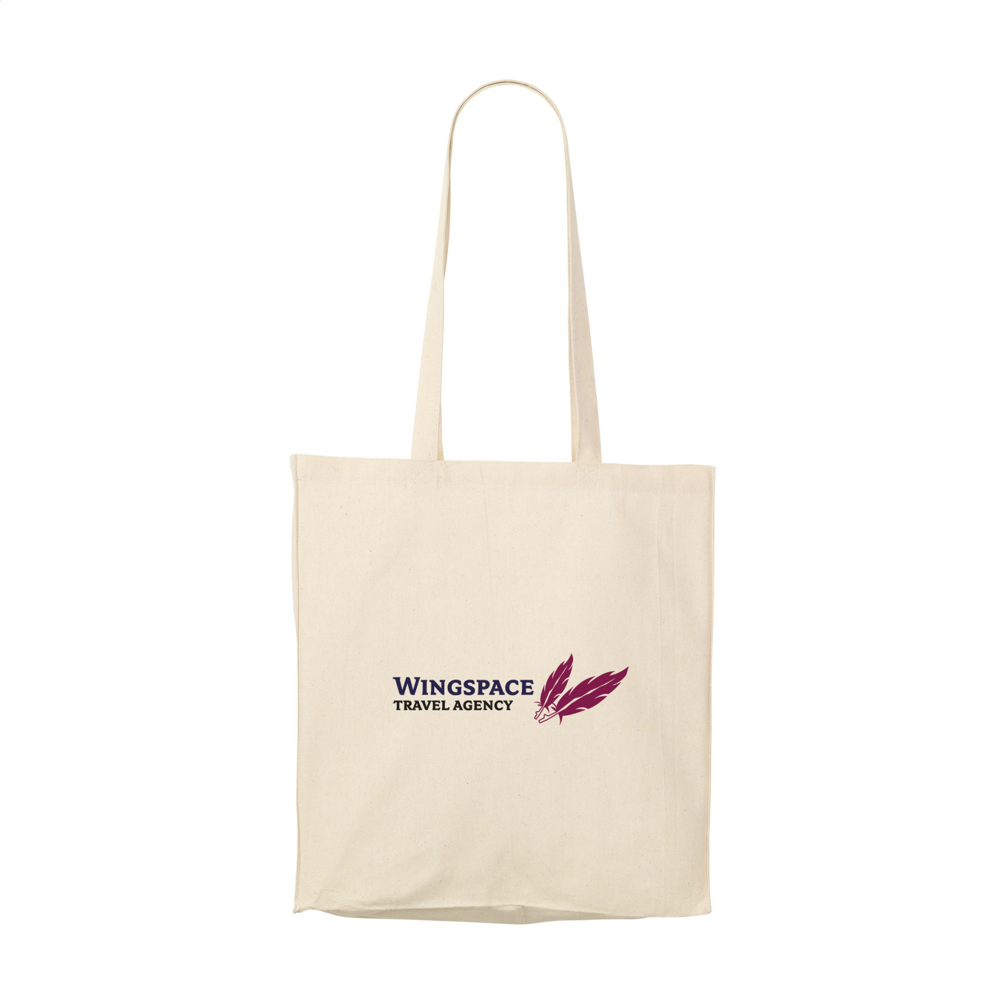 Tvirtas pirkėjas ilgomis rankenomis. Pagaminta iš 100% austos medvilnės (165 g/m²). Talpa apytiksl. 12 litrų.