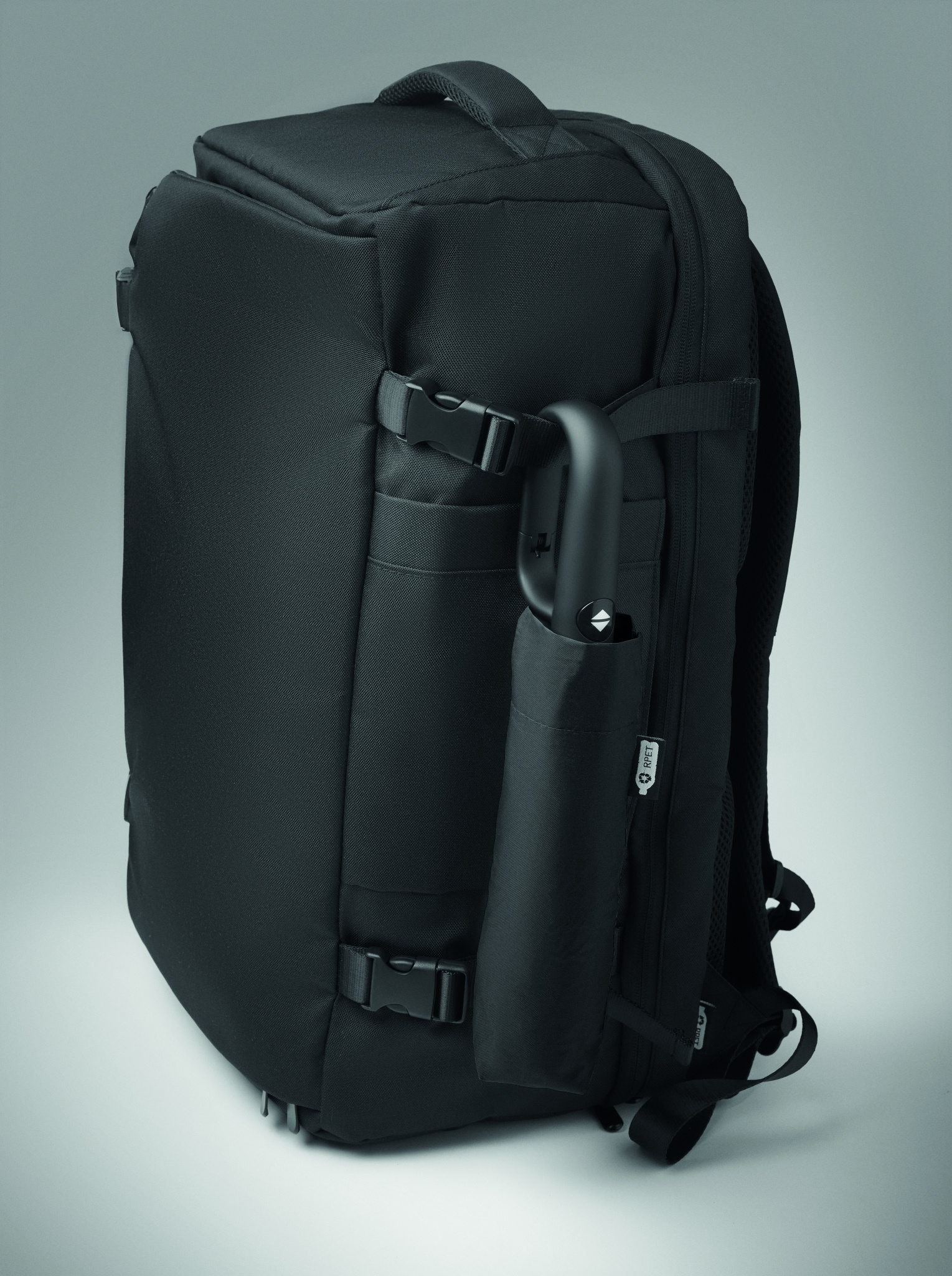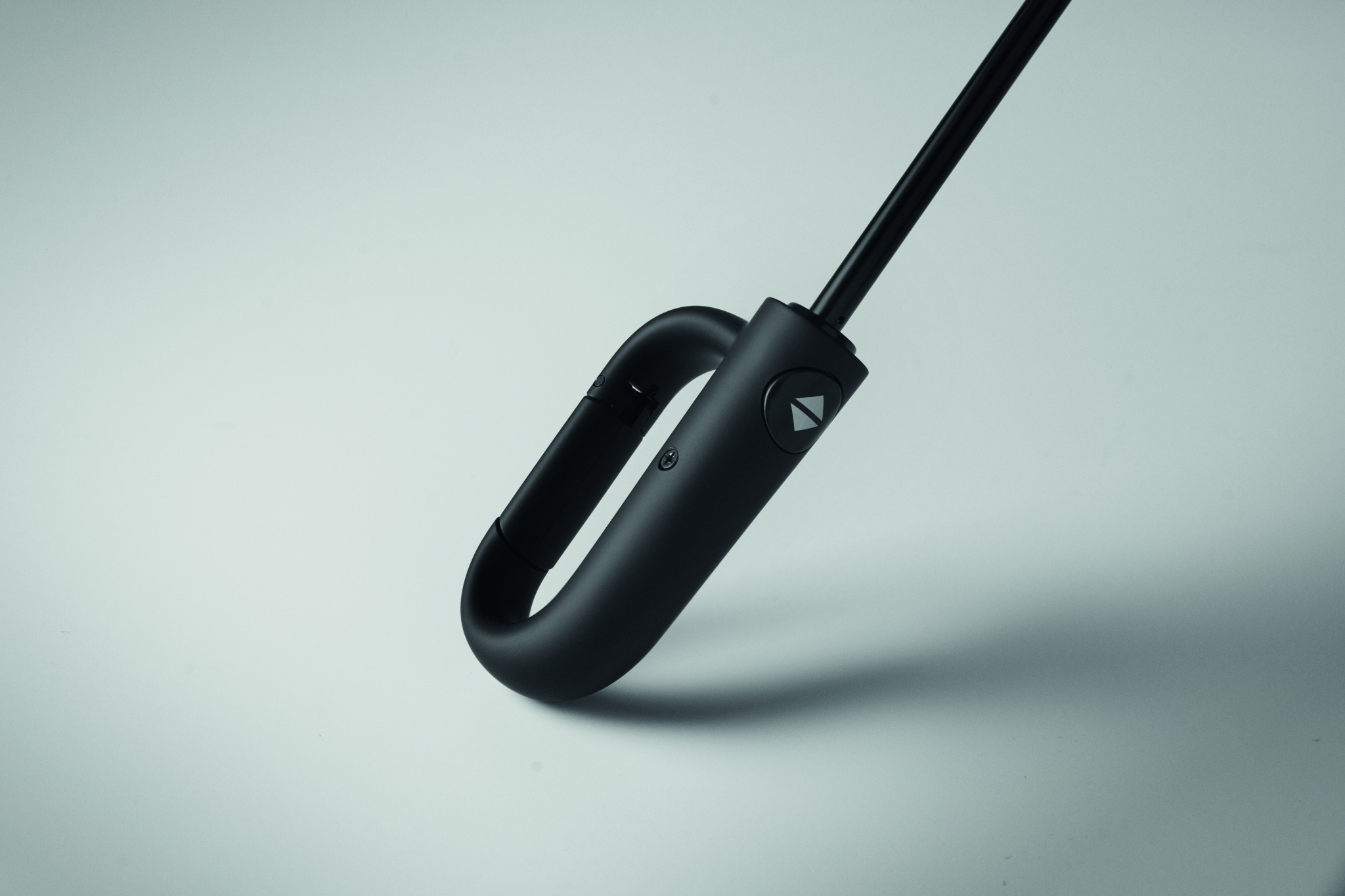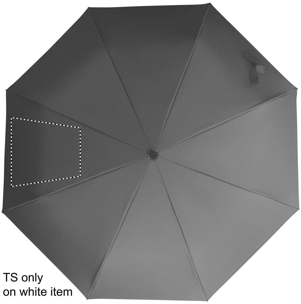 Salokāms 21 collu vēja necaurlaidīgs lietussargs ar pilnībā melnu stiklšķiedras rāmi ar 2 sekcijām. Stiklšķiedras ribas. 190T RPET pongee paneļi. D formas karabīnes rokturis ar gumijas apdari. Automātiska atvēršana un aizvēršana. Komplektā iekļauta kabata.