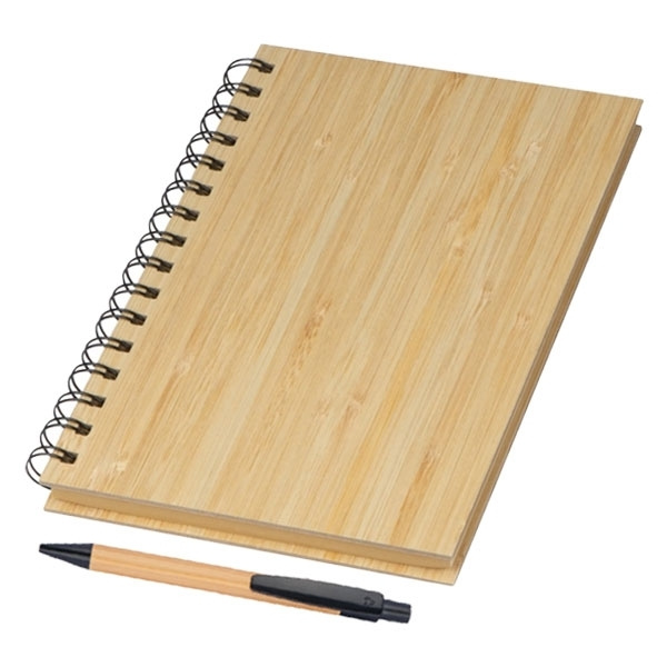 Šiks eko komplekts, kas sastāv no DIN A5 piezīmju grāmatiņas ar bambusa vāku, spirālveida iesējumu un 160 rindu lapām, kas izgatavotas no pārstrādāta papīra, kā arī bambusa lodīšu pildspalvas ar zilu plastmasas pildījumu un plastmasas aplikācijām. Mēs iegravēsim jūsu logotipu piezīmjdatora vāka ārpusē.
