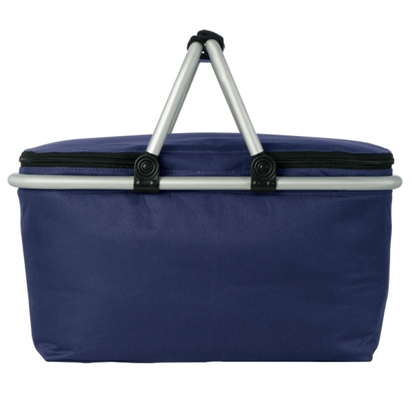 Iepirkumu grozs ar alumīnija rāmi un lielu dzesēšanas nodalījumu. Mēs drukājam jūsu logotipu vienā pusē.