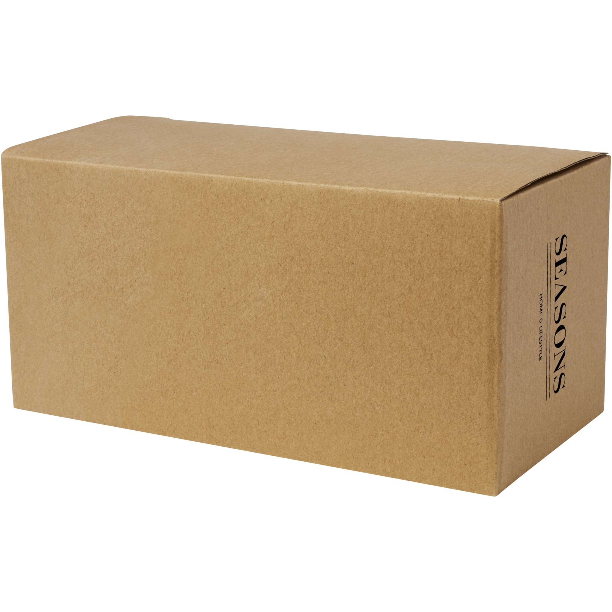 2 dubultsienu termoglāžu komplekts ar bambusa paliktni. Bambuss nāk no ilgtspējīgiem, videi un sociāli atbildīgiem avotiem. Pateicoties dubultajam borsilikāta stiklam, dzēriena temperatūra tiek saglabāta ilgu laiku. Tilpums ir 350 ml. Paliktņa izmērs: 10 x 10 x 1 cm.