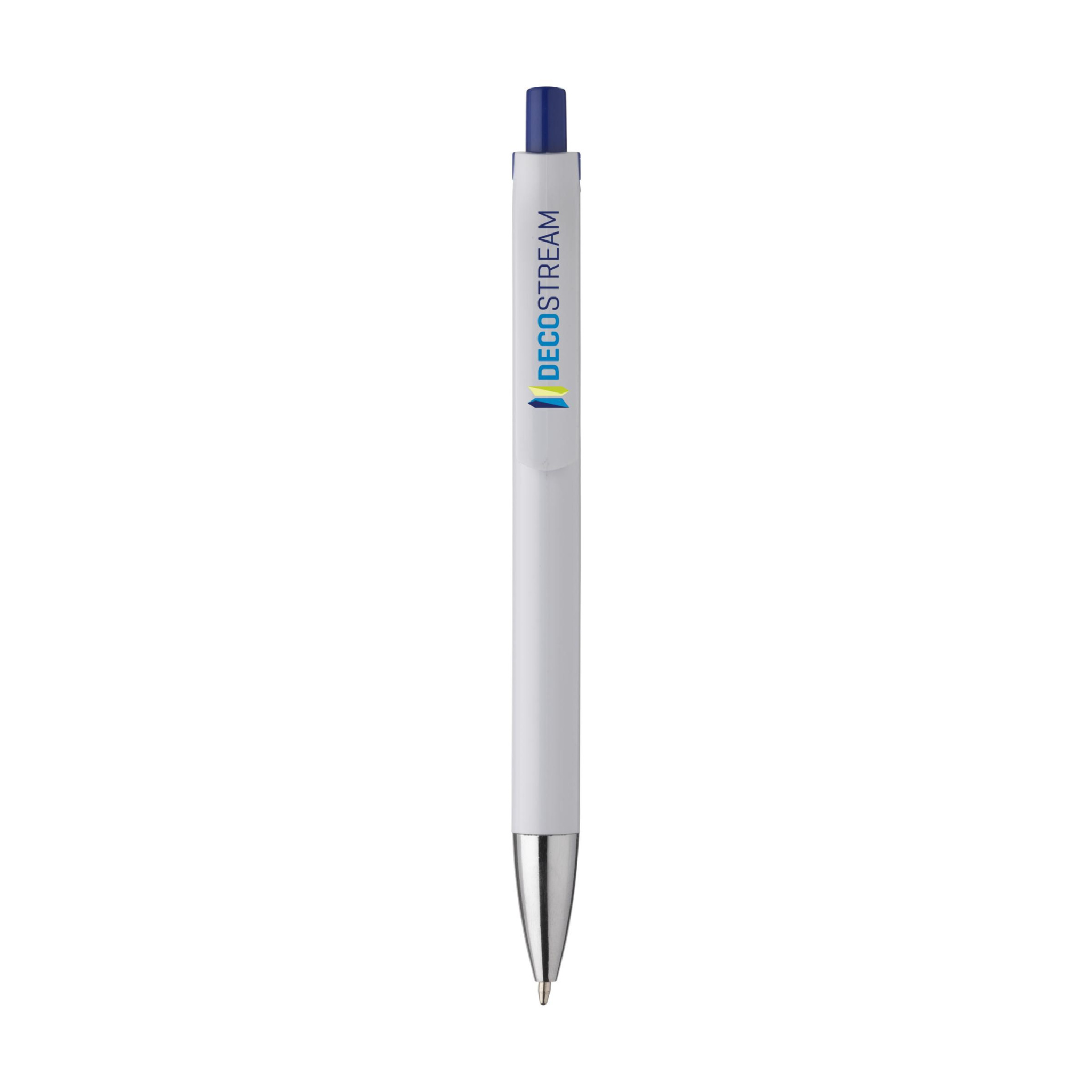 Zilas tintes lodīšu pildspalva ar stilīgu dizainu: šīs pildspalvas korpuss un klips ir integrēti. Uzkrītošs krāsu akcents zem klipa. Šī akcenta krāsa atbilst spiedpogas krāsai.