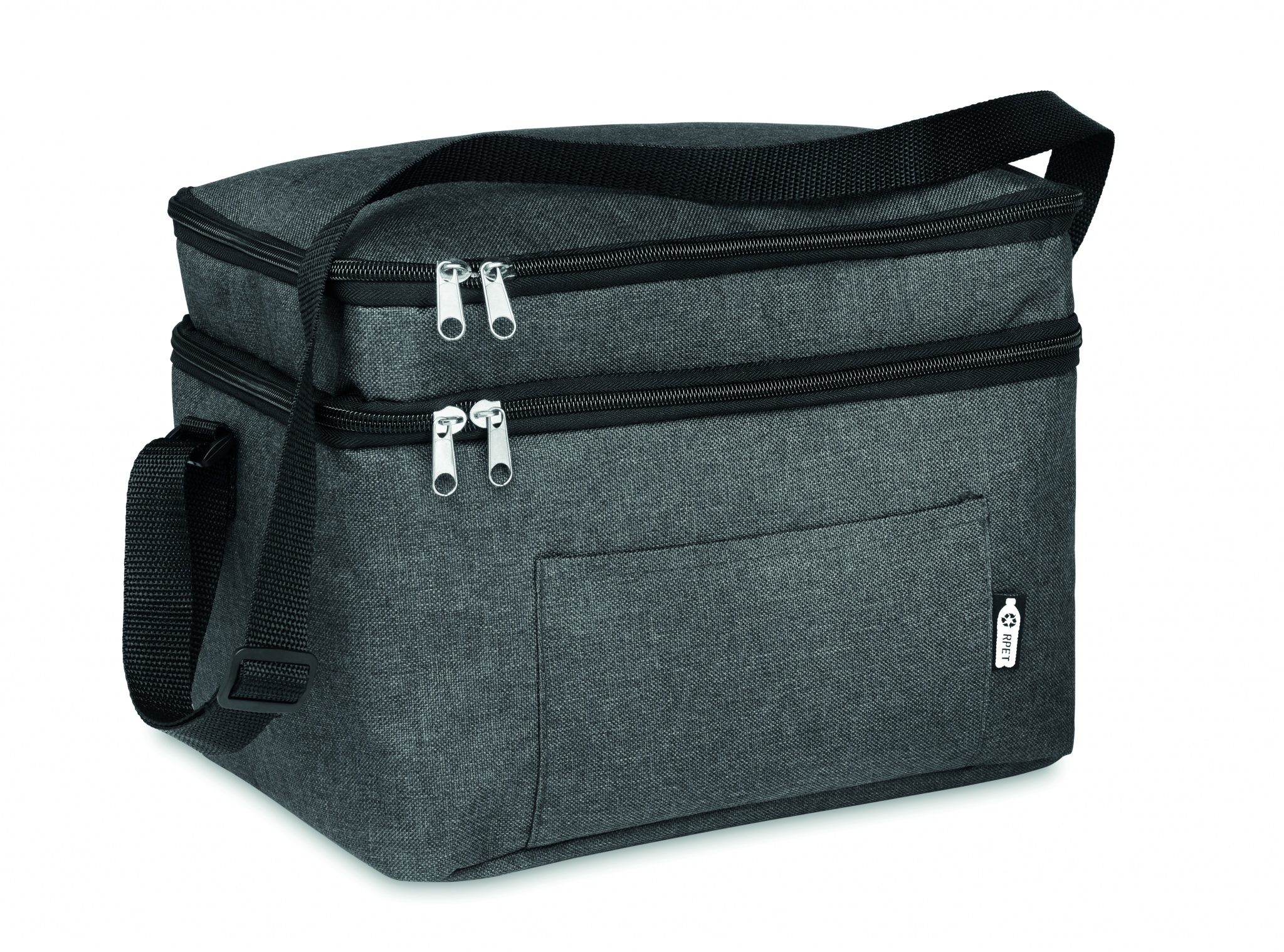 2 toņu 600D RPET aukstuma soma ar 2 nodalījumiem un PEVA oderi. Regulējama plecu siksna un priekšējā kabata. Izolācijas materiāls: 0,15 mm PEVA + 3 mm putas.
