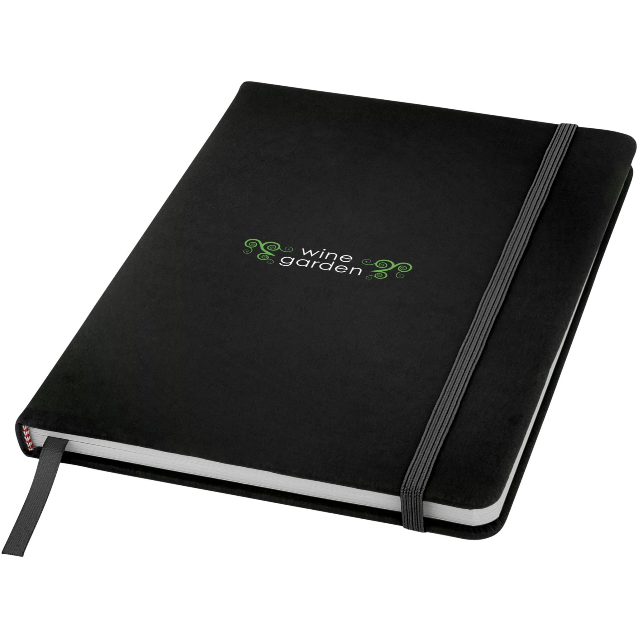 A5 piezīmju grāmatiņa ar atbilstošas krāsas elastīgu aizdari un lenti. Ietver 96 loksnes (60g/m2) tukšu papīru.