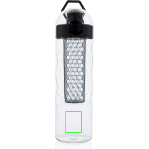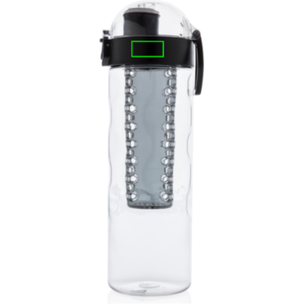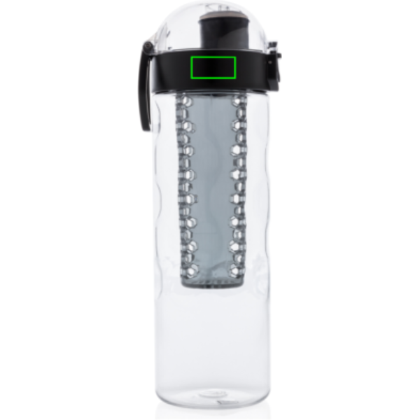 Pievienojiet savam ūdenim veselīgu augļu garšu. Šī dizaina pudele ar šūnveida detaļām piedāvā ērtu dzeršanu ar vienu roku. Nospiediet pogu, un vāks atvērsies. Ir īpašs bloķēšanas mehānisms, lai neļautu lietotājiem nejauši nospiest pogu. Ieskaitot pārnēsāšanas rokturi. Šī infūzijas pudele ir izgatavota no izturīga un inovatīva tritāna materiāla. Bez smaržas un 100% BPA. Saturs 700ml. Reģistrēts dizains®