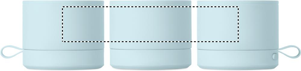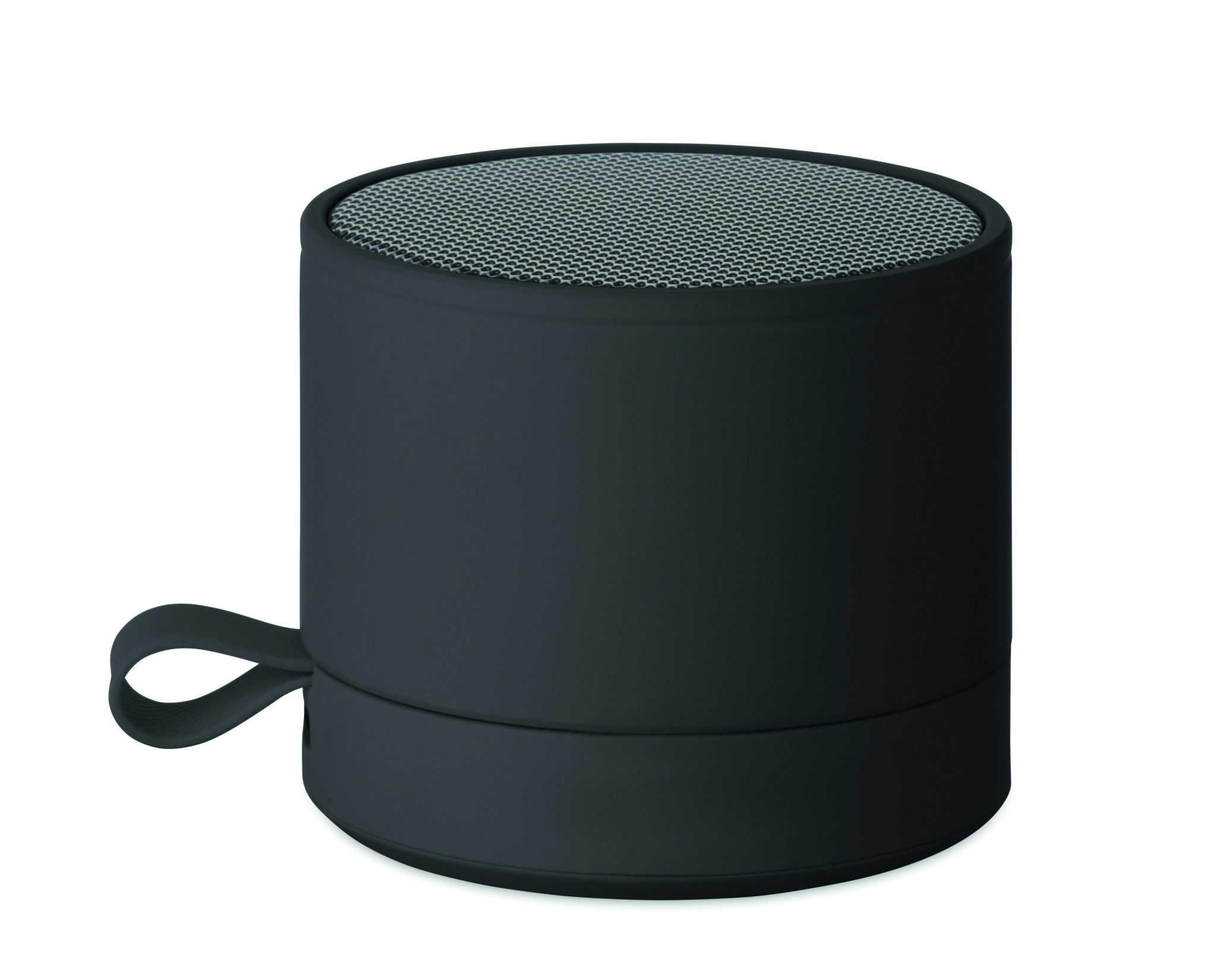 Wireless 5.1 speaker with metal body and rubber finish. Features 3W mono sound. Includes rechargeable and replaceable 500mAh battery. Compact and modern design.