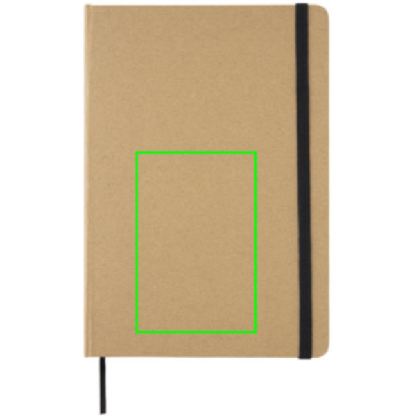 Тетрадь в крафтовой обложке с переработанной бумагой. 72 листа/144 страницы бумаги плотностью 70 г/м2. Бумага кремового цвета. Эластичная лента и закладка-лента.